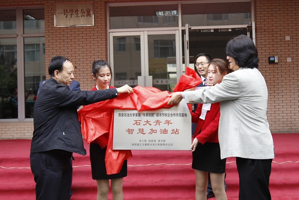 10月15日上午,由校團(tuán)委主辦的“書(shū)香校園”讀書(shū)節(jié)之“石大青年智慧加油站”揭牌儀式在新校區(qū)一號(hào)學(xué)生公寓大學(xué)生服務(wù)中心舉辦。校黨委書(shū)記賽云秀、副書(shū)記雷西合,西安圖書(shū)發(fā)行業(yè)協(xié)會(huì)會(huì)長(zhǎng)、陜西嘉匯漢唐圖書(shū)發(fā)行有限責(zé)任公司董事長(zhǎng)唐代偉出席活動(dòng)。學(xué)生工作處、校團(tuán)委負(fù)責(zé)人及100余名學(xué)生參加了活動(dòng)。