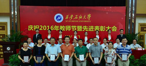 會上,校領(lǐng)導(dǎo)對《西安石油大學(xué)關(guān)于表彰獎勵“教書育人30年”教師的決定》,榮獲2015年國家級、省部級科技成果獎勵項目名單,2015年陜西省教學(xué)成果獎獲獎名單,2016年陜西省優(yōu)秀教材獎獲獎名單,2016年“陜西省教學(xué)名師”教師名單,2016年陜西省師德先進(jìn)個人和師德建設(shè)先進(jìn)集體名單,《中共西安石油大學(xué)委員會 西安石油大學(xué)關(guān)于表彰2016年優(yōu)秀教師 先進(jìn)教育工作者的決定》《中共西安石油大學(xué)委員會 西安石油大學(xué)關(guān)于表彰2016年師德建設(shè)先進(jìn)集體和師德先進(jìn)個人的決定》進(jìn)行了宣讀,并為受表彰教職工頒發(fā)了榮譽(yù)證書和獎牌?!敖虝?0年教師”代表、陜西省師德標(biāo)兵劉振華教授做了發(fā)言。