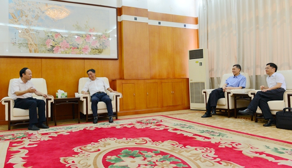 賽云秀書記(左一)、屈展校長(zhǎng)(右二)與孫一平書記(左二)、張烈輝副校長(zhǎng)(右一)親切交流