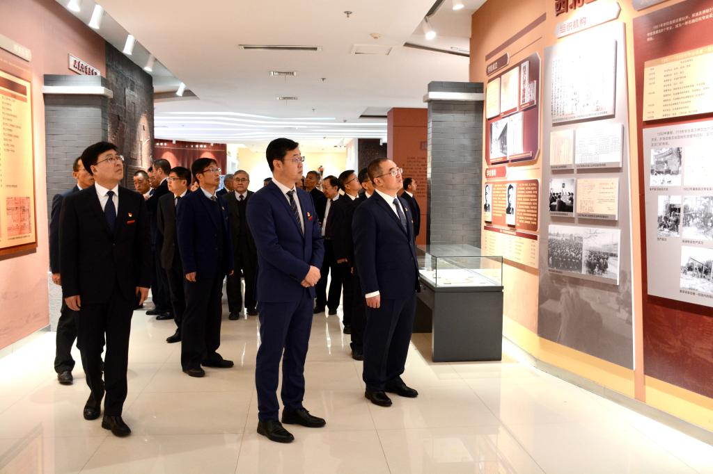 隨后,常江、王進(jìn)富等來(lái)到校史館,重溫老一輩無(wú)產(chǎn)階級(jí)革命家對(duì)學(xué)校的親切關(guān)懷,回顧篳路藍(lán)縷、開(kāi)拓進(jìn)取的建校辦學(xué)歷史。在校史館上半展區(qū),展示了在習(xí)仲勛等老一輩無(wú)產(chǎn)階級(jí)革命家關(guān)懷下,1951年學(xué)校創(chuàng)辦的歷史。秉承“艱苦創(chuàng)業(yè)、興油報(bào)國(guó)”的辦學(xué)理念,學(xué)校堅(jiān)定起步,砥礪前行。50年代末,學(xué)校開(kāi)啟本科辦學(xué)歷程,廣大師生不辱使命、勵(lì)精圖治,各項(xiàng)事業(yè)取得了較快發(fā)展。即使在學(xué)校遭受重創(chuàng)、停辦改廠期間,依然堅(jiān)持科技攻關(guān),產(chǎn)生了一批科學(xué)研究和技術(shù)攻關(guān)成果。80年代初,學(xué)校弦歌復(fù)響、絳帳重開(kāi),邁入新的發(fā)展時(shí)期,并凝練形成了“團(tuán)結(jié)、勤奮、求是、創(chuàng)新”八字校風(fēng)。全體同志透過(guò)一個(gè)個(gè)展板、一件件歷史實(shí)物,深刻感悟?qū)W校厚重的歷史積淀、滄桑的辦學(xué)歷程,深切體會(huì)前輩們辦學(xué)興教的不易。厚重的歷史提醒全體同志不忘來(lái)時(shí)道路的艱辛,務(wù)必牢記初心使命、賡續(xù)紅色血脈。