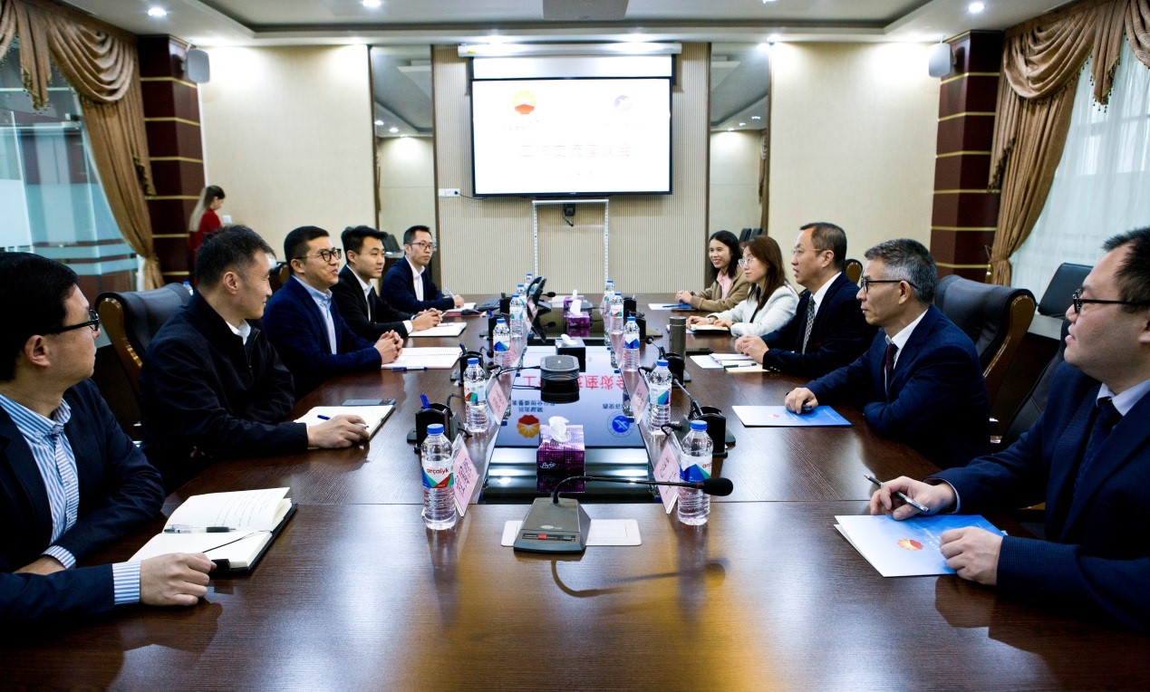 與卡卡耶夫國際油氣大學(xué)校長阿塔馬諾夫等負(fù)責(zé)人座談