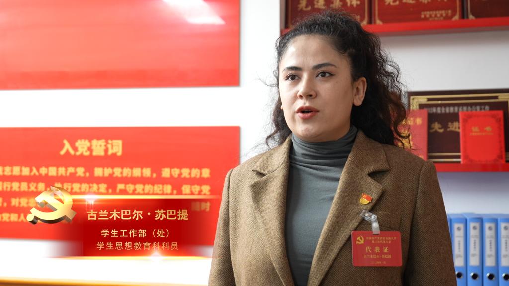 報告提出,加強新形勢下民族宗教工作,堅決抵御和防范校園傳教滲透。“報告更加明確了我校民族宗教工作的方向和重點。在新時代背景下,要始終堅持黨的民族宗教政策,深化民族團結進步教育,把鑄牢中華民族共同體意識貫穿于教育教學全過程?!鄙贁?shù)民族代表、學生工作部(處)學生思想教育科科員古蘭木巴爾?蘇巴提說,“可以通過豐富多彩的文化交流活動,鼓勵和支持少數(shù)民族學生發(fā)揮自身優(yōu)勢,展現(xiàn)民族文化魅力,提升自我價值,讓民族團結的種子在學生心中生根發(fā)芽。”