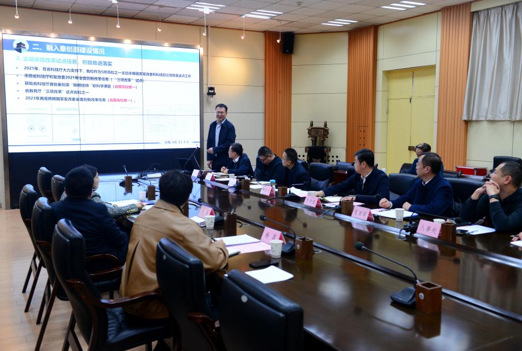 會上,我??萍继幪庨L張益詳細(xì)匯報了我校在融入秦創(chuàng)原平臺建設(shè)、實施科技成果轉(zhuǎn)化“三項改革”方面的進(jìn)展與成效,并闡述了下一步重點改革措施的和工作規(guī)劃。