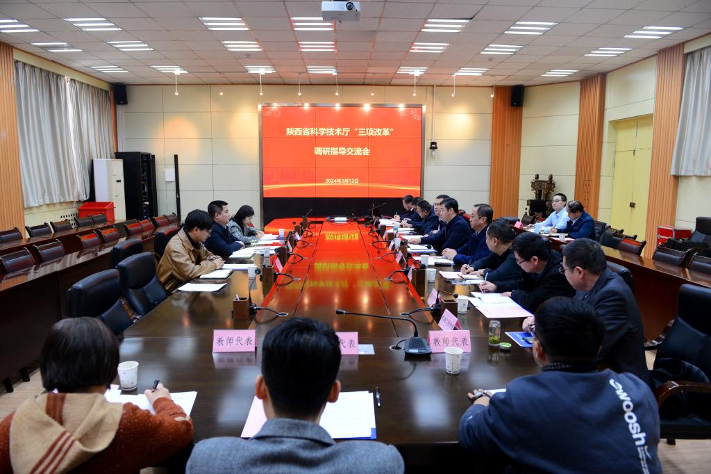 3月12日下午,陜西省科技廳副廳長王軍來校調(diào)研科技成果轉(zhuǎn)化“三項改革”工作進(jìn)展情況。會議在雁塔校區(qū)會議中心第二會議室舉行,我校校長王進(jìn)富出席會議,副校長張榮軍主持會議。
