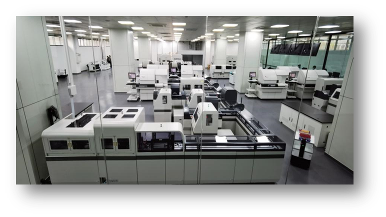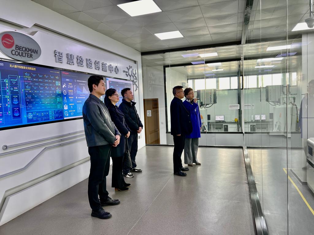 張驍勇一行實(shí)地參觀了智慧化無人值守智慧化檢驗(yàn)實(shí)驗(yàn)室、臨床分子實(shí)驗(yàn)室、微生物及藥敏實(shí)驗(yàn)室、質(zhì)量安全管理部和與三橋社區(qū)衛(wèi)生服務(wù)中心合作共建實(shí)驗(yàn)室,了解了全國首個擁有無人值守全自動檢驗(yàn)流水線的醫(yī)學(xué)檢驗(yàn)實(shí)驗(yàn)室在充分運(yùn)用“互聯(lián)網(wǎng)+”技術(shù)搭建人工智能平臺,實(shí)現(xiàn)送檢標(biāo)本從分揀、檢驗(yàn)、審核到存儲、復(fù)檢的全流程智慧化運(yùn)行情況。座談環(huán)節(jié),張驍勇向西安區(qū)域醫(yī)學(xué)檢驗(yàn)中心簡要介紹了學(xué)?;厩闆r、醫(yī)療工作現(xiàn)狀以及發(fā)展愿景。張曉勇提到今年是我校貫徹落實(shí)學(xué)校第三次黨代會的開局之年,開啟了學(xué)校各項(xiàng)事業(yè)高質(zhì)量發(fā)展的新征程,做好醫(yī)療等重要民生工程,構(gòu)建以人為本、可持續(xù)發(fā)展的一流保障體系是學(xué)校高質(zhì)量發(fā)展的基礎(chǔ),希望通過雙方進(jìn)一步深化合作,推動優(yōu)質(zhì)檢驗(yàn)資源下沉擴(kuò)容,發(fā)揮西安醫(yī)檢體系優(yōu)勢和平臺作用,為我校廣大師生提供便捷、精確的醫(yī)學(xué)檢驗(yàn)服務(wù)。
