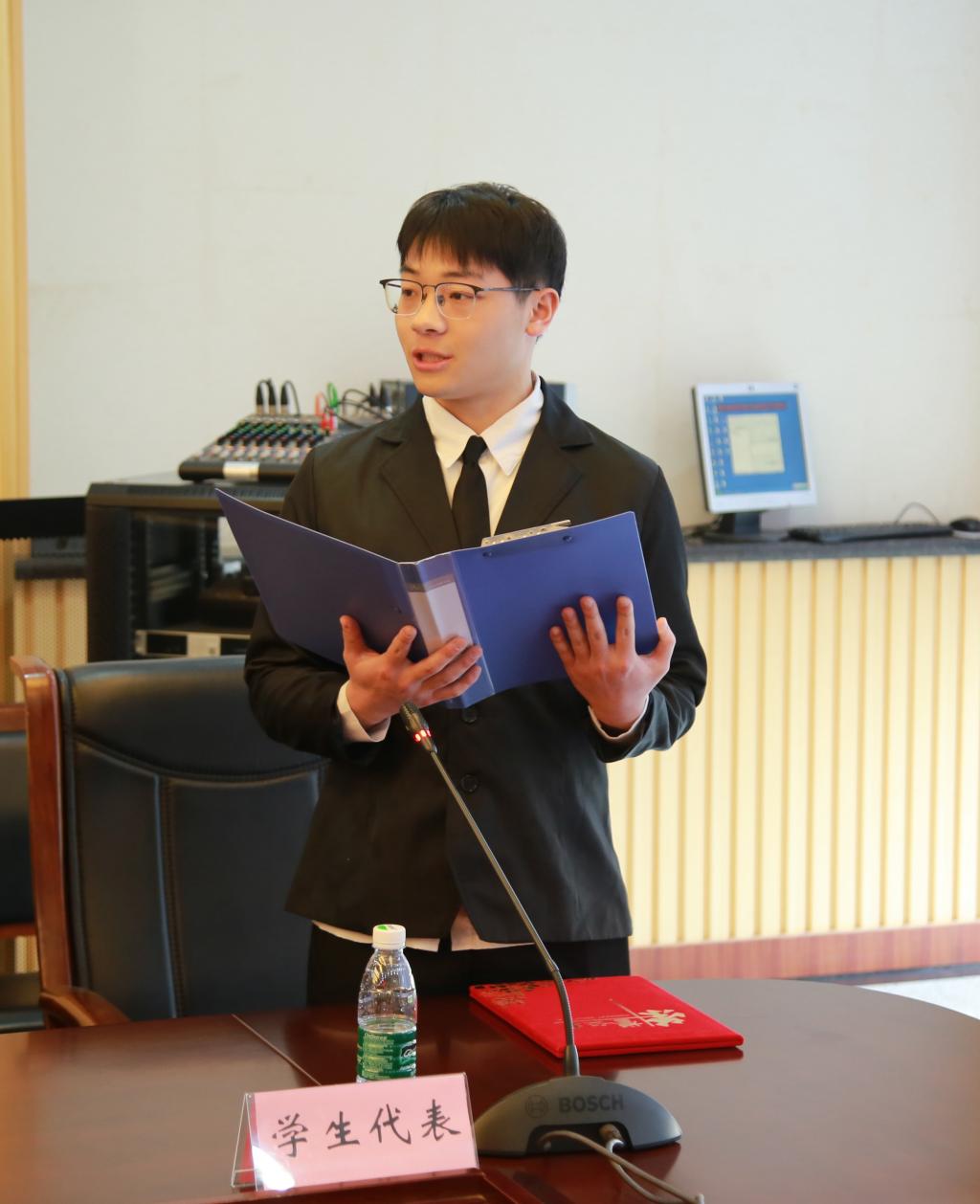 隨后進(jìn)行了“菁英人才獎(jiǎng)學(xué)金”頒獎(jiǎng)儀式,“菁英人才”獎(jiǎng)學(xué)金獲得者代表材料科學(xué)與工程學(xué)院徐劍同學(xué)發(fā)言。