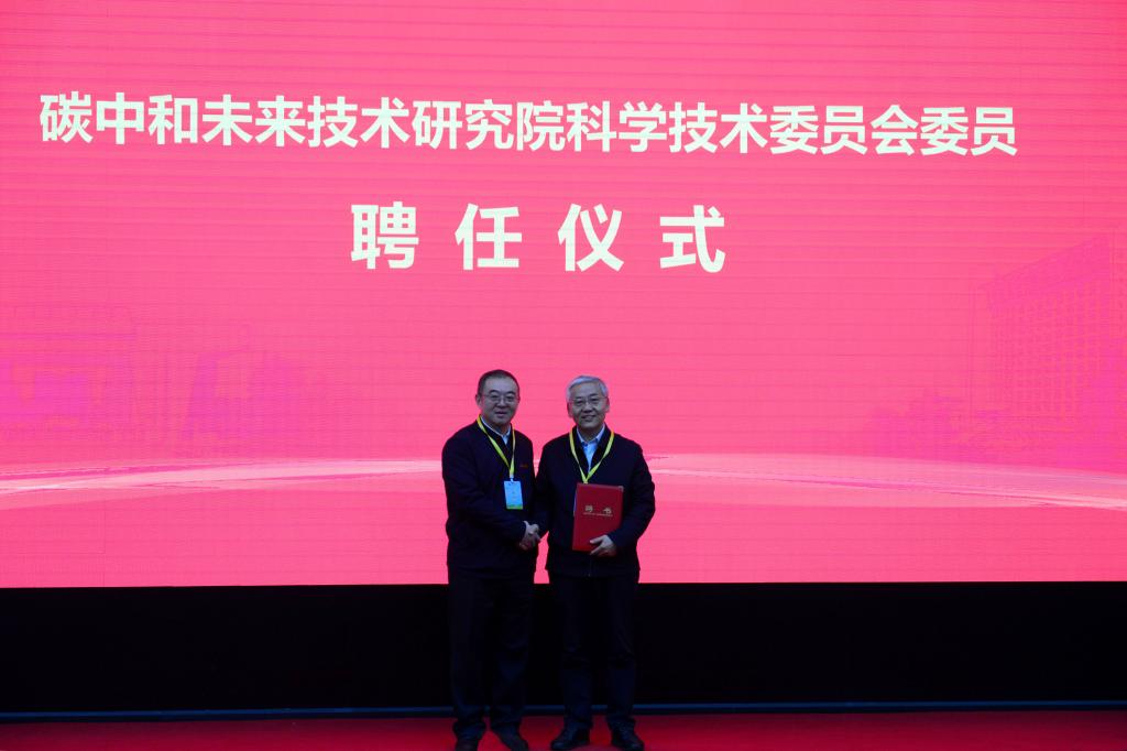 王進富為王香增教授頒發(fā)“西安石油大學(xué)碳中和未來技術(shù)研究院”院長聘書。常江為彭蘇萍院士頒發(fā)研究院第一屆科學(xué)技術(shù)委員會主任聘書,并為多吉院士、王雙明院士、劉合院士、李寧院士、孫煥泉院士依次頒發(fā)研究院第一屆科學(xué)技術(shù)委員會委員聘書。王進富為研究院第一屆產(chǎn)業(yè)技術(shù)委員會委員頒發(fā)聘書。
