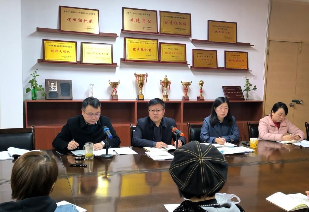 3月27日下午,圖書館黨支部在雁塔校區(qū)圖書館二樓會議室組織政治理論學(xué)習(xí),全體黨員參加集體學(xué)習(xí)。分管校領(lǐng)導(dǎo)張驍勇副校長以普通黨員身份參加了此次學(xué)習(xí)。