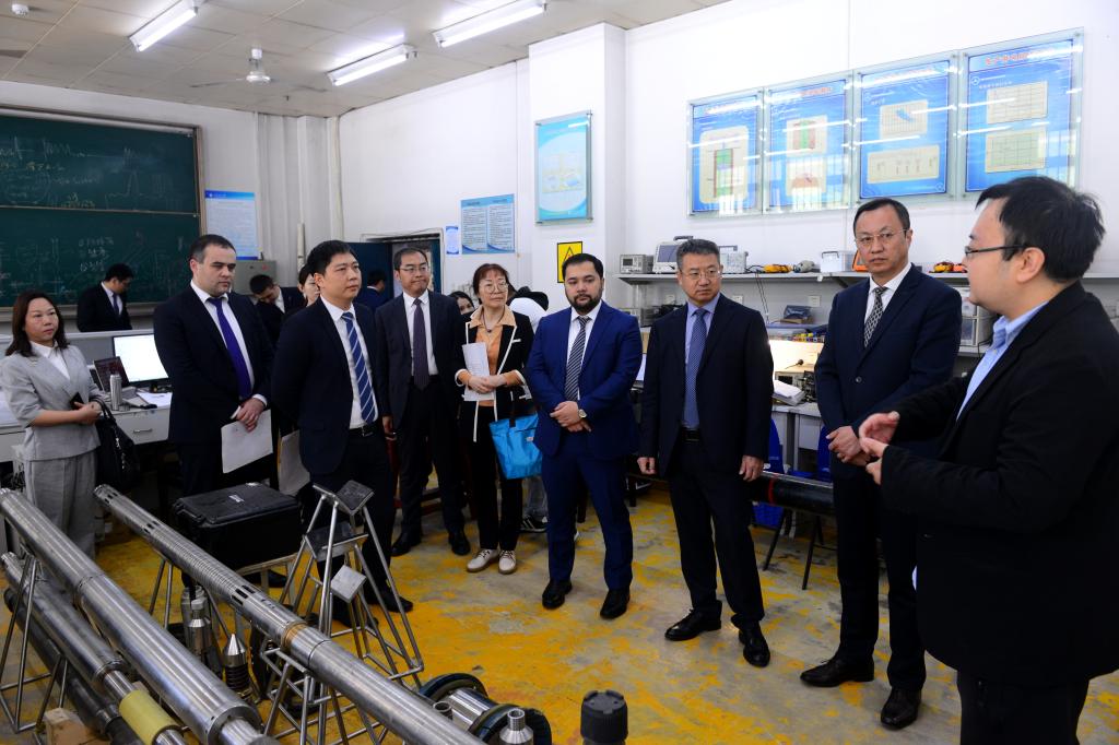 座談會前,中烏天然氣管道有限公司中外嘉賓一行還考察了學(xué)校西部低滲-特低滲透油田開發(fā)與治理教育部工程研究中心、油氣資源電子探測研究室,與在校塔吉克斯坦籍、吉爾吉斯斯坦籍、烏茲別克斯坦籍留學(xué)生代表進行了現(xiàn)場交流,了解了中塔、中吉等項目培養(yǎng)留學(xué)生在校學(xué)習(xí)收獲及生活情況。