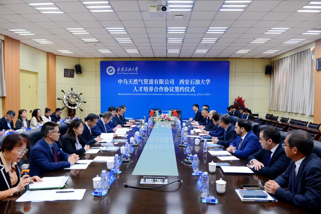 簽約儀式上,常江代表學(xué)校向公司中外嘉賓一行來??疾?、座談表示熱烈的歡迎。他指出,學(xué)校與中油國際管道公司聯(lián)合實施的中塔、中吉人才培養(yǎng)校企合作項目,已經(jīng)成為“一帶一路”人才培養(yǎng)典型成果,項目的成功實施和創(chuàng)新的培養(yǎng)模式在中塔、中吉兩國企業(yè)界、教育界引起廣泛關(guān)注和贊譽。他表示,中烏天然氣管道作為“中亞-中國”天然氣管道的重要組成部分,是在中烏兩國領(lǐng)導(dǎo)人親自推動下實施的具有重大戰(zhàn)略意義的宏偉工程,也是共建“一帶一路”倡議下能源合作的優(yōu)秀典范。學(xué)校衷心希望繼續(xù)發(fā)揮自身優(yōu)勢和特色,為中烏能源領(lǐng)域合作提供人才支撐和智力支持,持續(xù)推進中烏人才培養(yǎng)、產(chǎn)學(xué)研等方面合作,產(chǎn)出更多碩果。