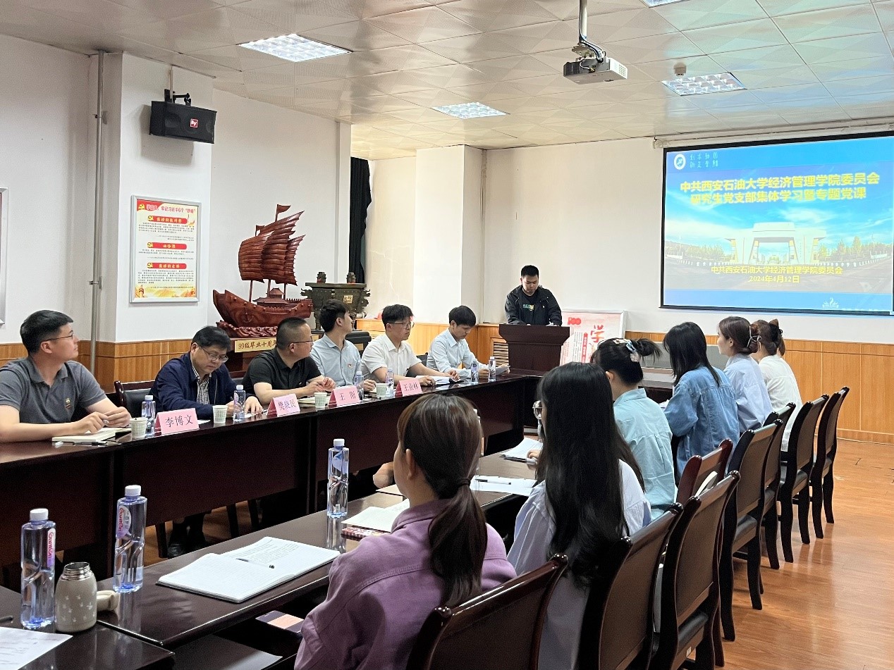 4月12日,經(jīng)濟管理學(xué)院2022級學(xué)碩黨支部在雁塔校區(qū)東方石油樓1507會議室召開支部黨員大會,總會計師樊曉民以普通黨員身份參加支部學(xué)習(xí),與支部黨員同志一起交流,并講授專題黨課。