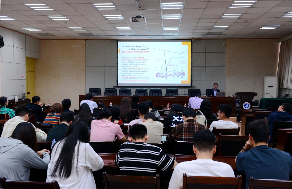 最后,程院士指出,目前國際能源工業(yè)在發(fā)展CCUS技術(shù)方面,投入大量人力物力并取得巨大進步,預(yù)計CCUS技術(shù)是在較長時期內(nèi)平衡能源供應(yīng)保障與能源轉(zhuǎn)型的重要手段。但CCUS技術(shù)研發(fā)方面還存在很多不足,腐蝕是導(dǎo)致CO2管道失效的最重要原因。分享結(jié)束后,程院士與在場師生開展了積極的互動交流,詳細(xì)地回答了師生提出的各種問題。