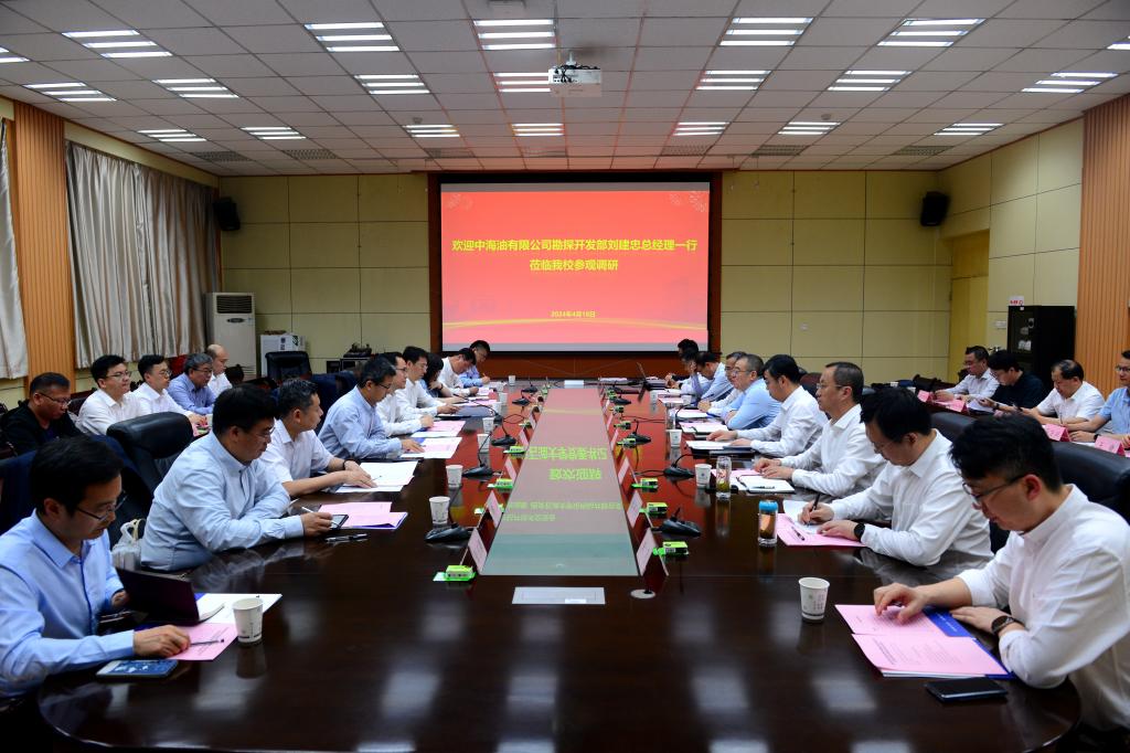 常江代表學(xué)校對(duì)劉建忠一行到訪我校表示熱烈歡迎,對(duì)中國(guó)海油及中海油服一直以來(lái)給予學(xué)校的大力支持和幫助表示感謝。他談到,我校與中國(guó)海油建立了深厚的合作情誼,校企合作不僅給雙方帶來(lái)了實(shí)質(zhì)性的幫助,也促進(jìn)了雙方的互相信任和友好往來(lái),我校將繼續(xù)與中國(guó)海油及中海油服深化合作,探索更多合作的可能性,共同推動(dòng)科研成果轉(zhuǎn)化和人才培養(yǎng)工作。
