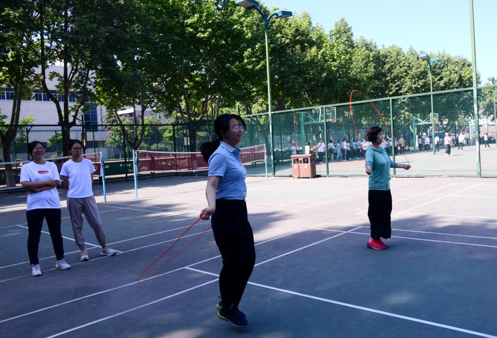 本屆教職工運動會共設(shè)有跳遠、背拋實心球、足球運球射門、籃球自投自撿、1分鐘跳繩、摸石頭過河等個人項目23項,4×100米接力、4×400米接力、集體2分鐘跳大繩、20人集體挽臂跑、20人30米迎面接力、袋鼠跳接力等集體項目7項,全校25個部門工會、600余名運動員參加,形成了全校教職工廣泛參與、全民健身的良好氛圍。