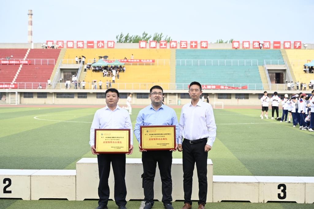 閉幕式上,張木為獲得體育道德風(fēng)尚獎(jiǎng)和男女團(tuán)體前三名的單位頒獎(jiǎng),張君濤為獲得團(tuán)體總分前六名的單位頒獎(jiǎng)。體育學(xué)院負(fù)責(zé)人為獲得后勤保障杰出貢獻(xiàn)獎(jiǎng)的西安德青餐飲公司和西安師苑公司頒獎(jiǎng)。