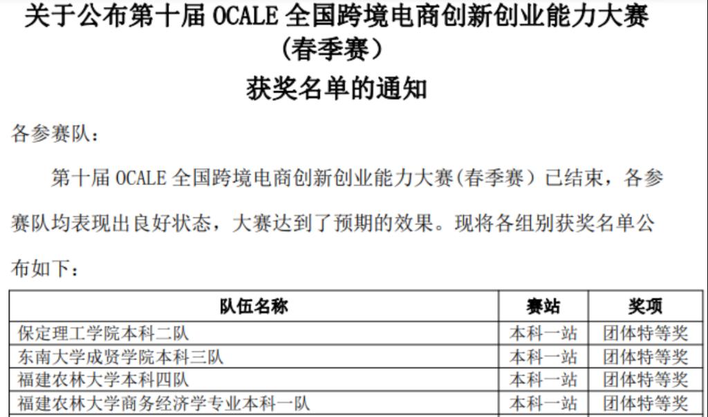 我校學(xué)子在第十屆OCALE全國(guó)跨境電商創(chuàng)新創(chuàng)業(yè)能力大賽(春季賽)中榮獲佳績(jī)