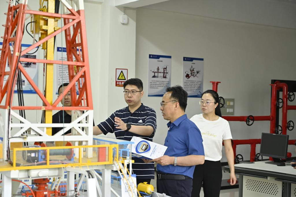 會前,校友工作與合作交流處負責人陪同張建軍一行參觀了我校逸夫工程訓練中心、陜西省石油石化虛擬仿真實驗教學中心,深入了解了地球科學巖石礦物標本、鉆井工程、采油工程、油氣儲運工程等實驗室建設情況。