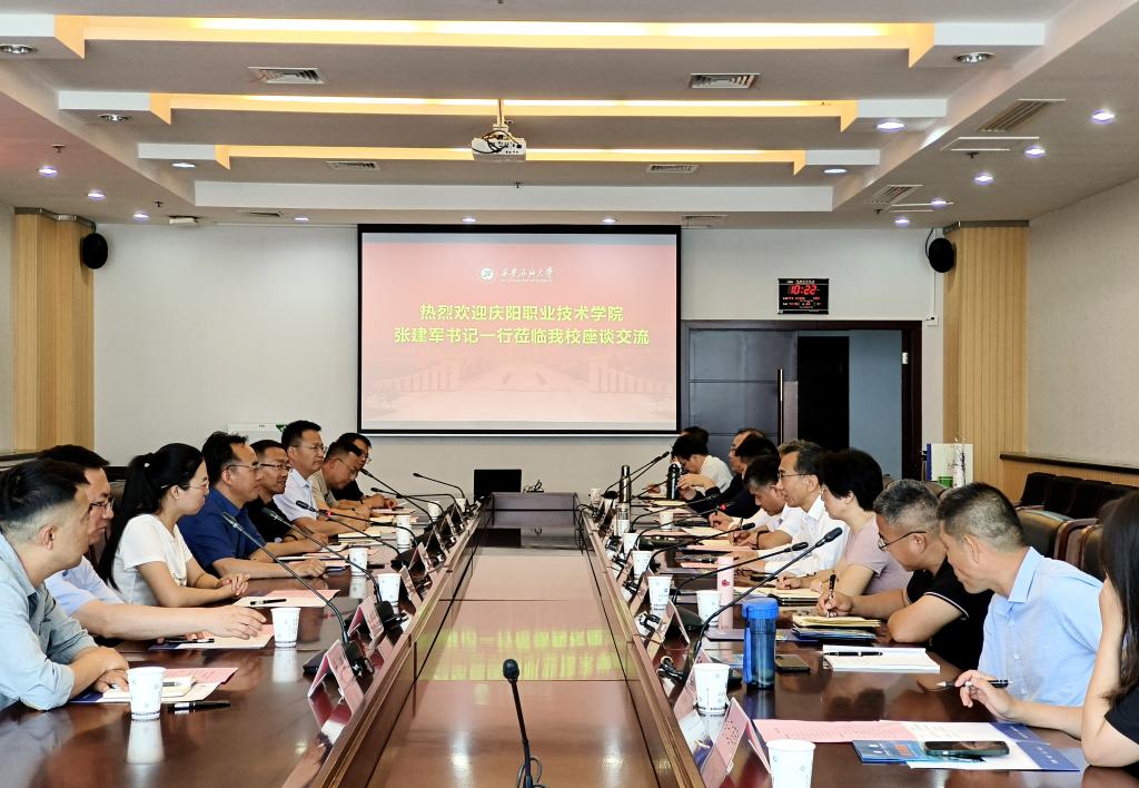 張建軍對我校的熱情接待表示感謝,并詳細介紹了慶陽職業(yè)技術(shù)學院的發(fā)展歷程、專業(yè)設置、特色方向以及人才培養(yǎng)模式等。他表示,此次調(diào)研走訪旨在學習借鑒西安石油大學的先進經(jīng)驗和做法,希望能在學校發(fā)展頂層設計、特色專業(yè)建設、學生實習實踐以及師資隊伍建設等方面得到我校的支持和幫助。