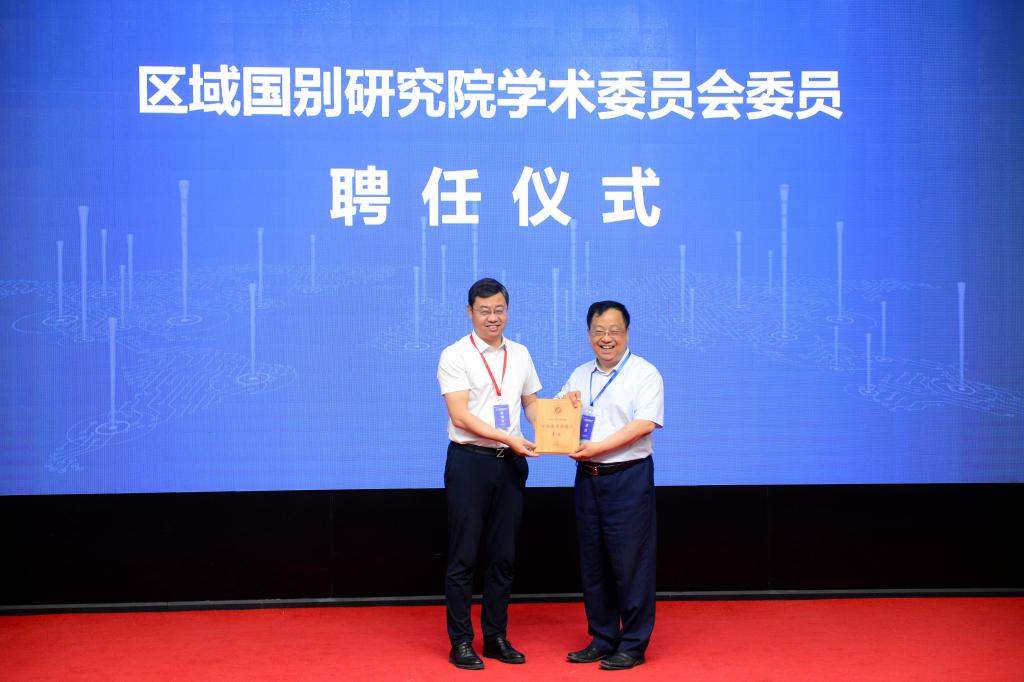 王進富為柯銀斌教授頒發(fā)研究院第一屆學術(shù)委員會委員聘書