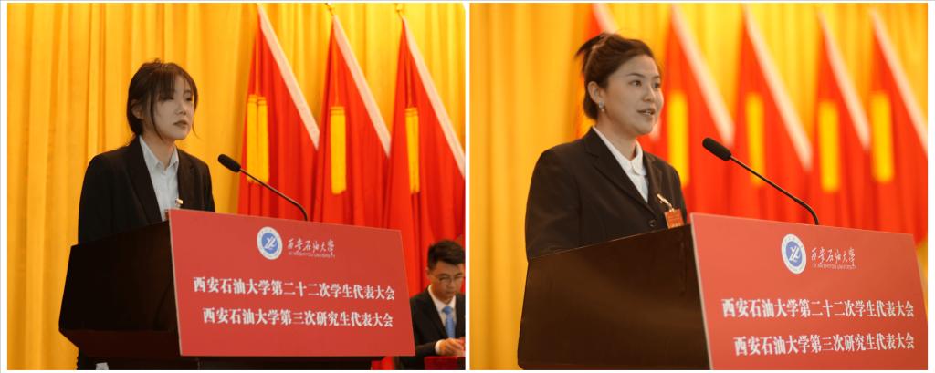 會上,第二十一屆學生會執(zhí)行主席秦雨桐作了題為《砥礪奮進譜新篇 挺膺擔當新青年 奮力譜寫建設特色鮮明的高水平教學研究型大學新篇章》的工作報告;第二屆研究生會執(zhí)行主席白又竹作了題為《青春正當時 奮進新征程 為推進學校建設特色鮮明的高水平教學研究型大學貢獻青春力量》的工作報告。