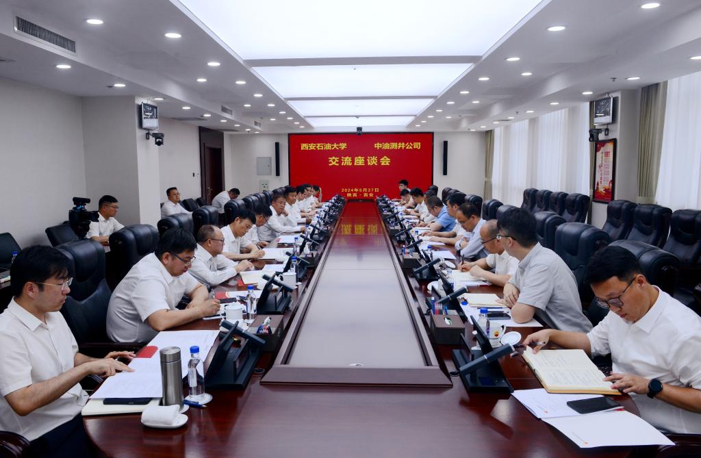隨后,雙方在公司科研綜合樓會議室舉行交流座談會。常江指出,西安石油大學(xué)和中油測井公司同根同源,雙方長期以來堅(jiān)持服務(wù)國家能源戰(zhàn)略,在各自行業(yè)矢志奮斗,公司發(fā)展成效顯著,感到由衷欽佩。常江向中油測井公司對學(xué)校的關(guān)懷、關(guān)注和支持表示衷心的感謝,簡要介紹了學(xué)校第三次黨代會有關(guān)情況以及今后一個(gè)時(shí)期學(xué)校主要工作任務(wù)。他談到,雙方合作在能源行業(yè)校企合作中具有示范意義,既要關(guān)注常規(guī),深化校企科學(xué)研究,加大科技成果轉(zhuǎn)化力度;也要關(guān)注超常規(guī),以學(xué)校碳中和未來技術(shù)研究院等實(shí)體研究院建設(shè)為契機(jī),加大人才聯(lián)合培養(yǎng)深度和廣度,推進(jìn)高層次人才校聘企用工作。雙方合作在科教融合、產(chǎn)教融匯方面具有廣闊空間,既要全面深入,整合現(xiàn)有科研力量加強(qiáng)有組織科研;也要高度融合,實(shí)現(xiàn)平臺互相開放、資源共建共享、黨建聯(lián)建共建。常江表示,希望雙方將合作再深入、再提級,協(xié)同提升油氣測井行業(yè)人才培養(yǎng)質(zhì)量,共同提高油氣服務(wù)、鉆探保障中難題攻關(guān)能力,助力企業(yè)早日建成世界一流測井公司,期待雙方在保障國家能源安全中持續(xù)作出更大貢獻(xiàn)。