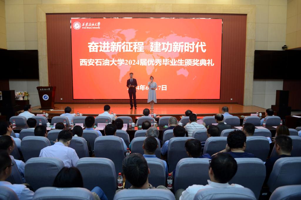 6月17日下午,西安石油大學(xué)2024屆優(yōu)秀畢業(yè)生頒獎典禮在鄠邑校區(qū)弘石學(xué)術(shù)報告廳舉辦。學(xué)校黨政領(lǐng)導(dǎo)常江、王進(jìn)富、張木、楊戰(zhàn)社、張榮軍出席頒獎典禮,黨委辦公室(校長辦公室)、黨委組織部、黨委宣傳部、黨委學(xué)生工作部、黨委保衛(wèi)部、團(tuán)委、教務(wù)處、實驗室管理處、研究生院(研究生工作部)、國際教育學(xué)院負(fù)責(zé)人,各院(系)書記、院長(主任)、副書記,全體輔導(dǎo)員及學(xué)生代表400余人參加會議。