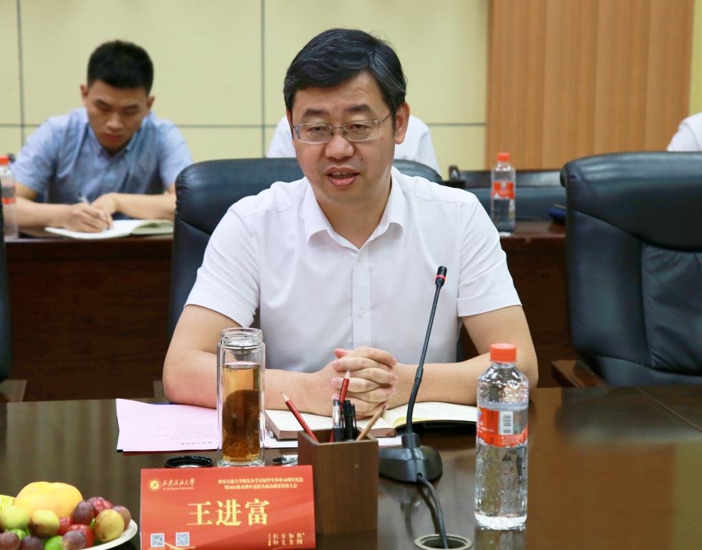王進富表示,校友們聚焦母校未來發(fā)展提出了真切的意見和建議,字字句句都是壓力和動力。他結合學校的發(fā)展現(xiàn)狀,介紹了在人才培養(yǎng)、學科建設、科學研究、校企合作、就業(yè)創(chuàng)業(yè)、終身學習等方面采取的一系列具體舉措和制度設計。他指出,母校時時刻刻牽掛著校友們,關注著校友們的每一次進步,學校定會以實際行動跑出加速度,不辜負校友們的美譽、表揚和期待。