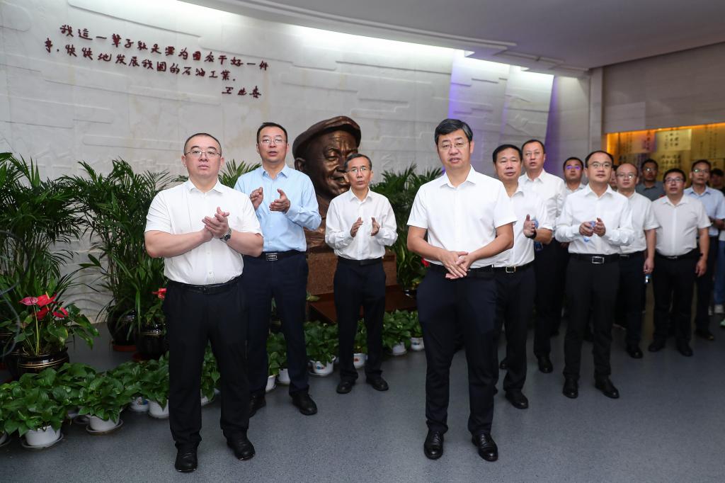 8月6日上午,常江、王進富一行參觀了大慶油田鐵人王進喜紀念館,聆聽鐵人故事講解,通過參觀銹跡斑斑的文物、鮮活的老照片、寫滿文字的筆記本等陳列品,物見鐵人本色、感受鐵人精神。大慶鉆探工程有限公司籌備組副組長、鉆探工程公司總經(jīng)理艾鑫全程陪同。