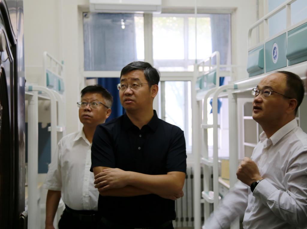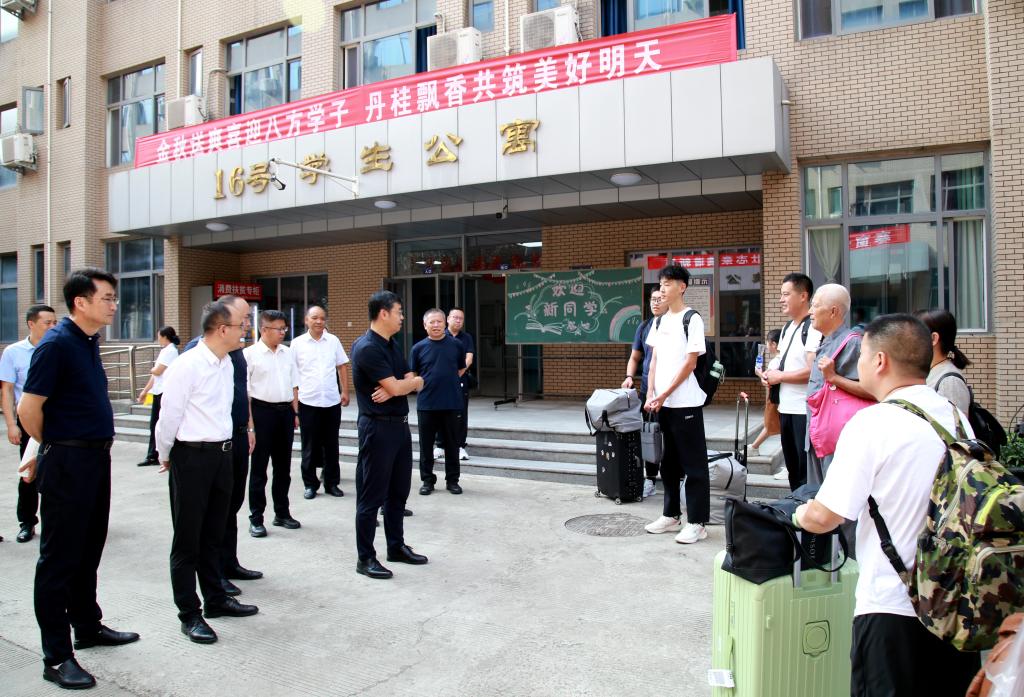 王進(jìn)富帶隊(duì)走進(jìn)東區(qū)15號(hào)和16號(hào)新生宿舍樓,聽取了后勤處負(fù)責(zé)同志關(guān)于新生宿舍準(zhǔn)備工作的匯報(bào)。在檢查中他強(qiáng)調(diào),宿舍的環(huán)境直接會(huì)影響到學(xué)生的學(xué)習(xí)和生活質(zhì)量,后勤處等相關(guān)部門必須全力以赴為學(xué)生提供一個(gè)安全、舒適、衛(wèi)生、便利的居住環(huán)境。檢查中,王進(jìn)富和宿舍樓前偶遇的新生及家長進(jìn)行了親切交談,并合影留念。