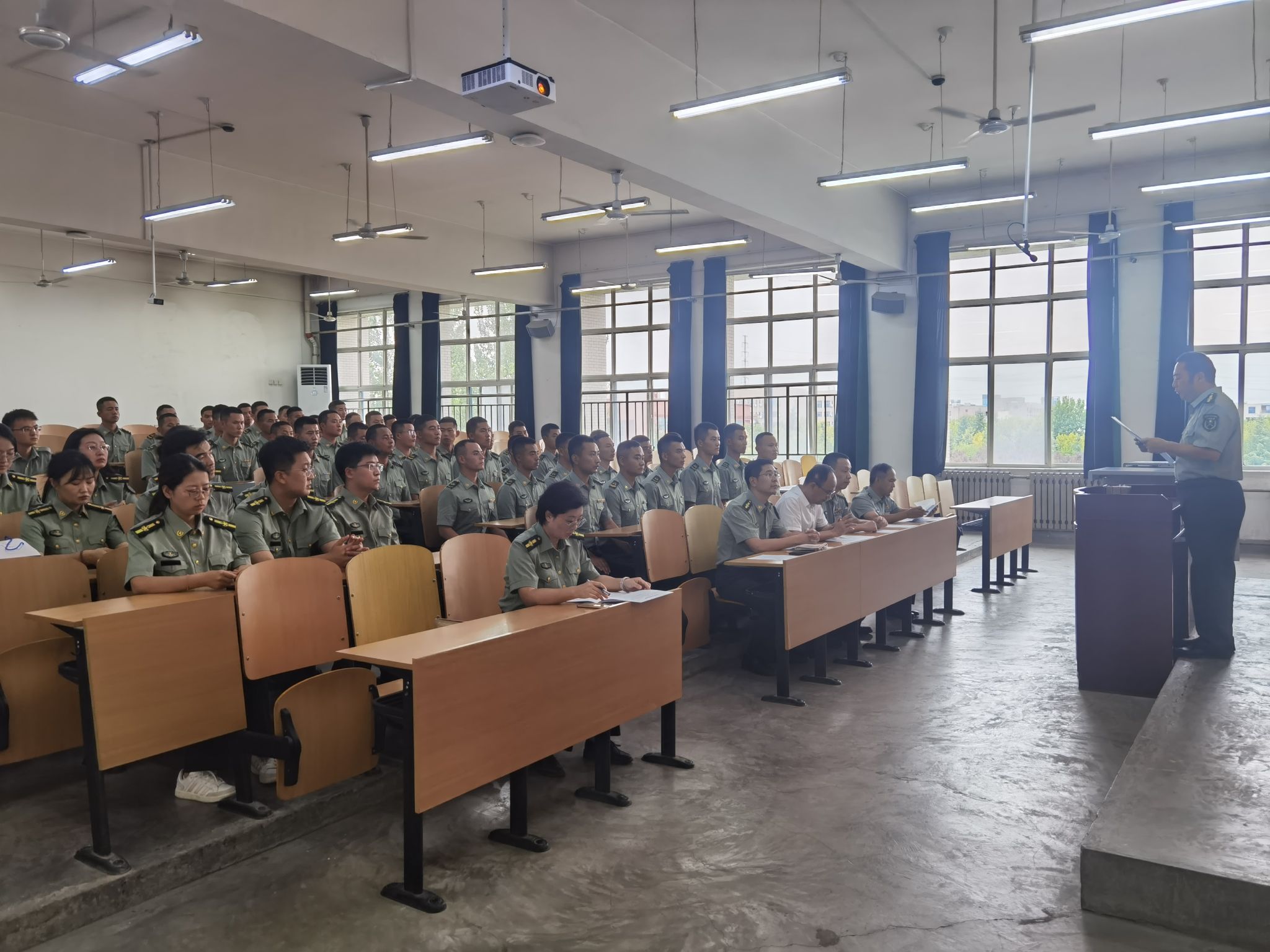 趙健代表學(xué)校黨政對部隊長期支持學(xué)校國防教育及軍訓(xùn)工作表示衷心的感謝,對承擔(dān)2024級學(xué)生軍訓(xùn)工作的全體教官表示熱烈的歡迎。他在講話中強調(diào),全體參訓(xùn)干部要高度重視此次軍訓(xùn)任務(wù),用心、用情上好新生的開學(xué)第一課。同時,他就做好本次軍訓(xùn)工作提出三點要求:一是軍訓(xùn)組織要嚴(yán)密。學(xué)校各有關(guān)部門、各單位要統(tǒng)籌兼顧,密切協(xié)作,確保軍訓(xùn)工作順利有序進行;全體參訓(xùn)干部要以高度的責(zé)任感投入到此次軍訓(xùn)中,密切配合部隊教官的軍事訓(xùn)練,全程深入訓(xùn)練第一線,要向?qū)W生、向社會展現(xiàn)我校特有的石油精神風(fēng)貌。二是軍訓(xùn)內(nèi)容要科學(xué)。各軍訓(xùn)教官要嚴(yán)格施訓(xùn)、科學(xué)施訓(xùn)、人文施訓(xùn)。訓(xùn)練中既要“嚴(yán)”字當(dāng)頭,又要對學(xué)生保持耐心,要在言行上做學(xué)生的表率,向?qū)W生展現(xiàn)新一代革命軍人鐵一般的軍事紀(jì)律、優(yōu)良的光榮傳統(tǒng)和良好的軍容軍風(fēng)。三是軍訓(xùn)效果要明顯。全體參訓(xùn)單位和參訓(xùn)人員要切實增強學(xué)生的愛國主義意識和集體主義觀念,幫助學(xué)生盡快融入大學(xué)生活,同時,要注意軍訓(xùn)安全,保障此次軍訓(xùn)平安有序。各院(系)及相關(guān)部門要扎實做好后勤保障工作,為新生提供暖心服務(wù)。
