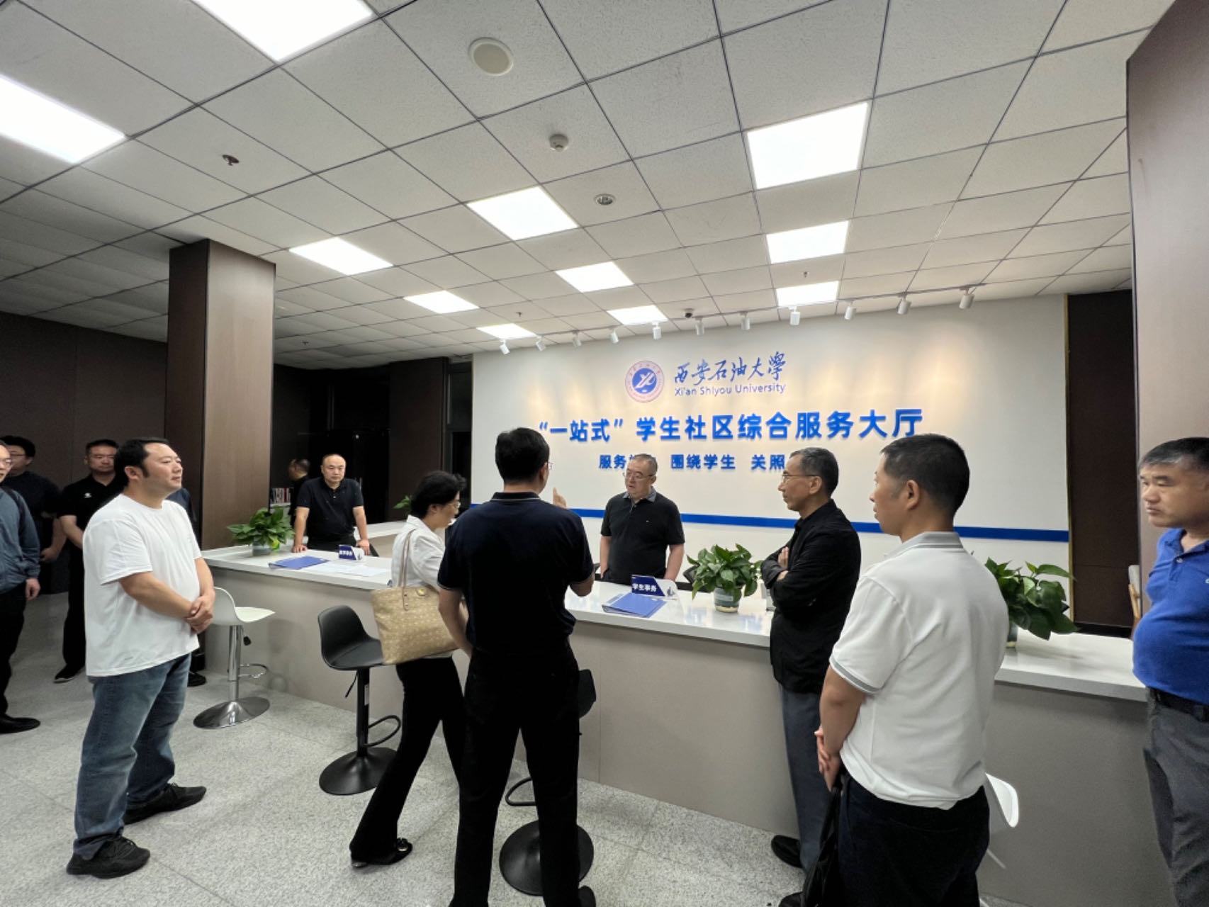 常江、張木走訪了“一站式”學(xué)生服務(wù)大廳,詳細(xì)了解服務(wù)大廳規(guī)劃布局和管理模式等學(xué)生社區(qū)各項(xiàng)建設(shè)情況。