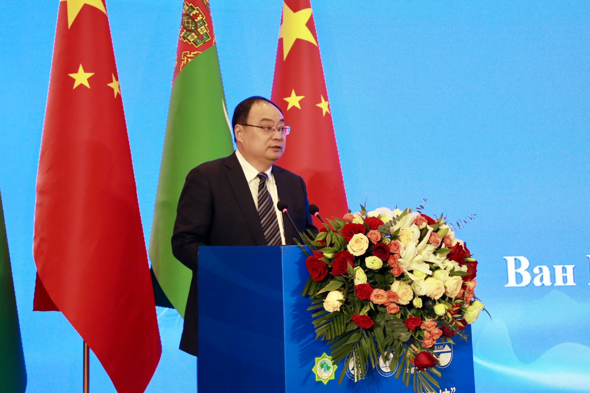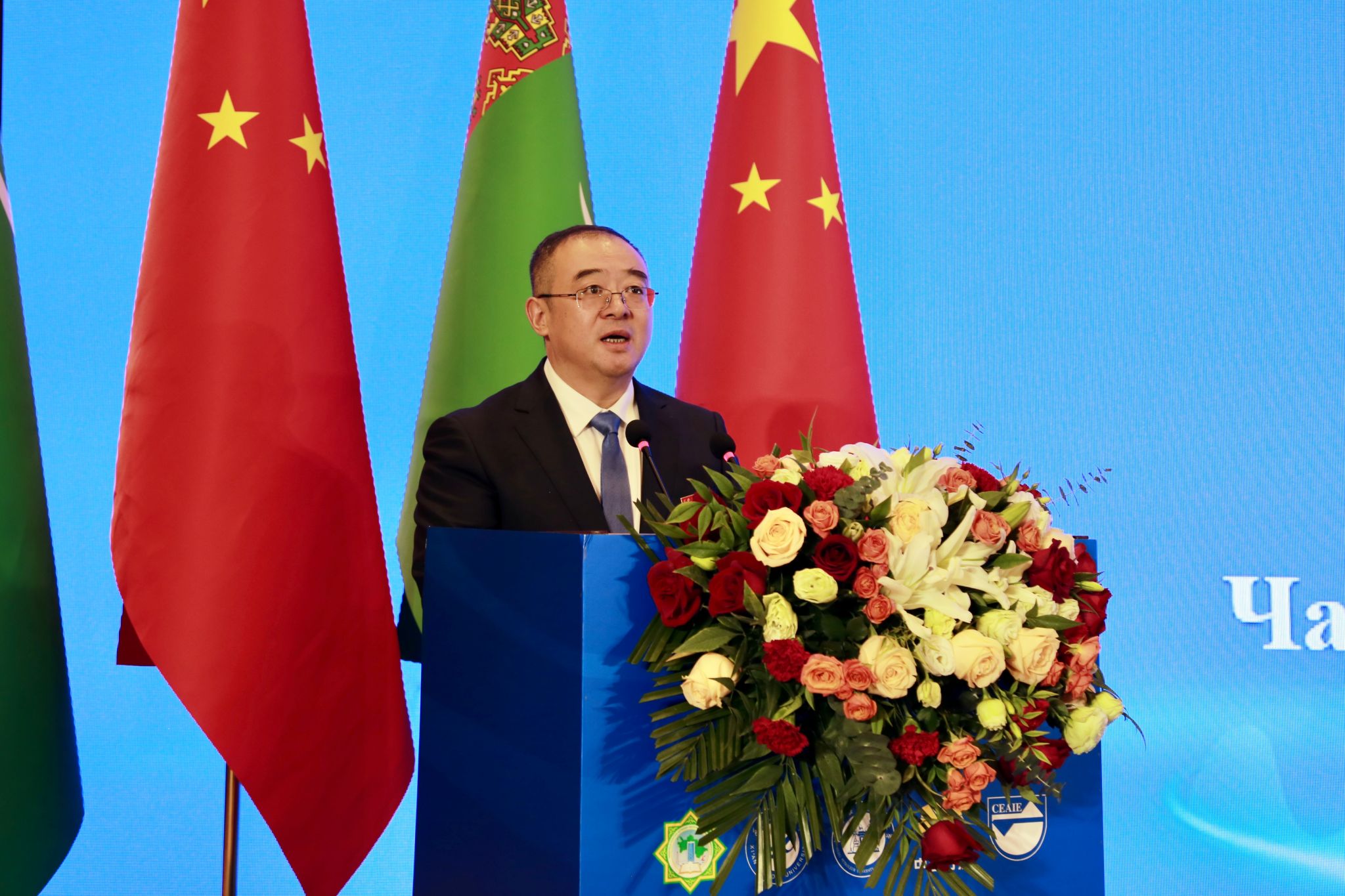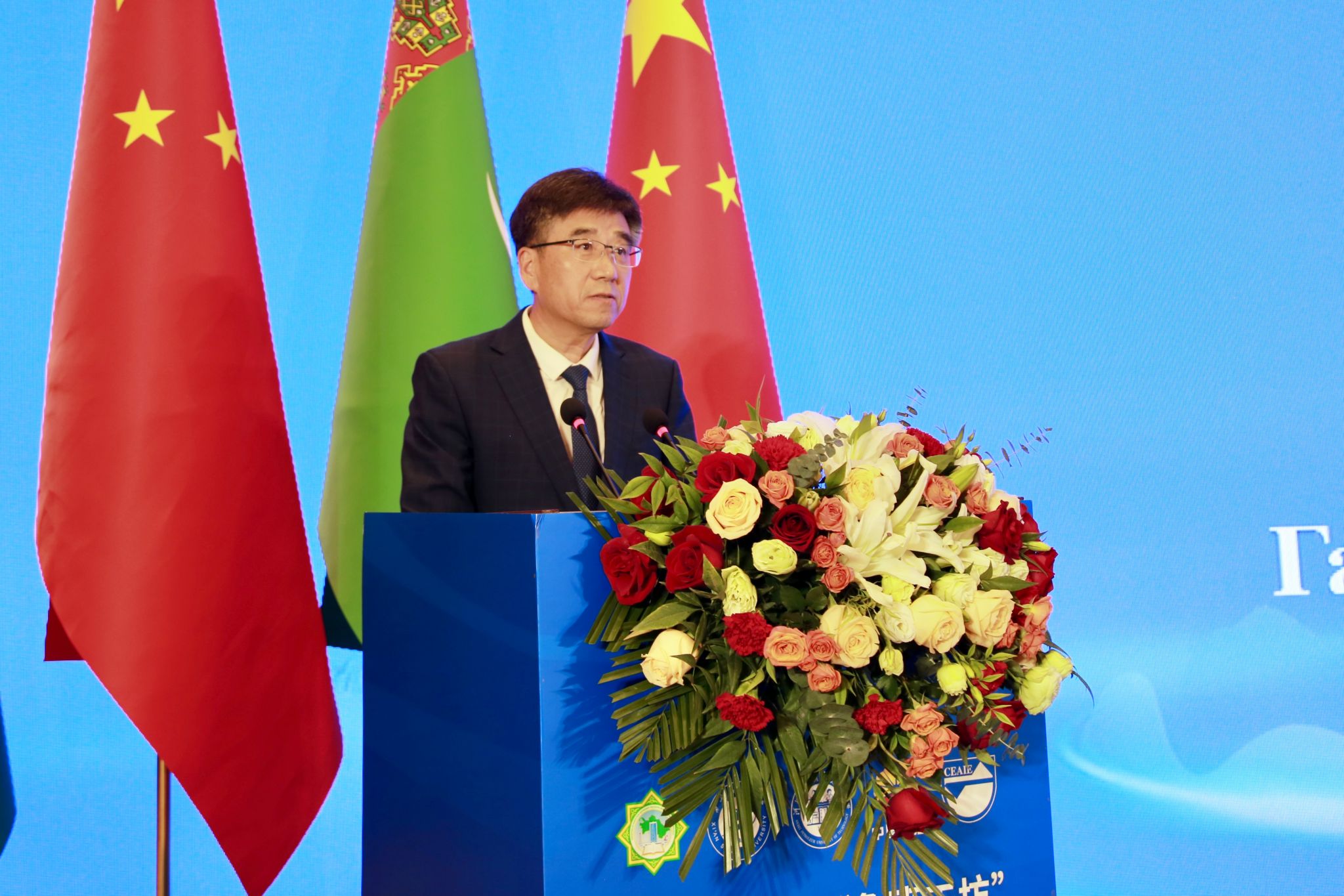 土庫(kù)曼斯坦卡卡耶夫國(guó)際油氣大學(xué)校長(zhǎng)拜拉姆穆拉特·阿塔馬諾夫作為土方共建高校負(fù)責(zé)人、代表專程來華出席和參加上述系列活動(dòng),土庫(kù)曼斯坦駐華大使館參贊拜拉姆·克雷奇馬梅多夫等使館教育官員參加相關(guān)活動(dòng),并與學(xué)校舉行了區(qū)域國(guó)別研究領(lǐng)域交流座談會(huì)。