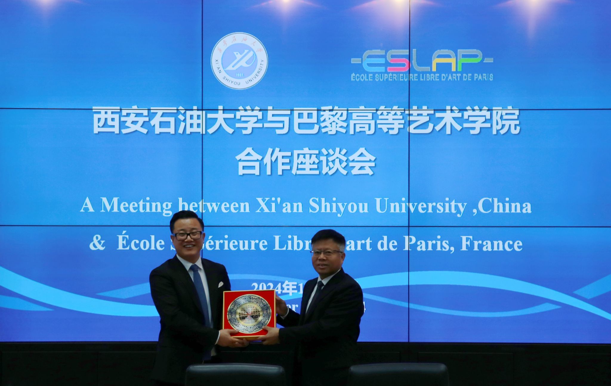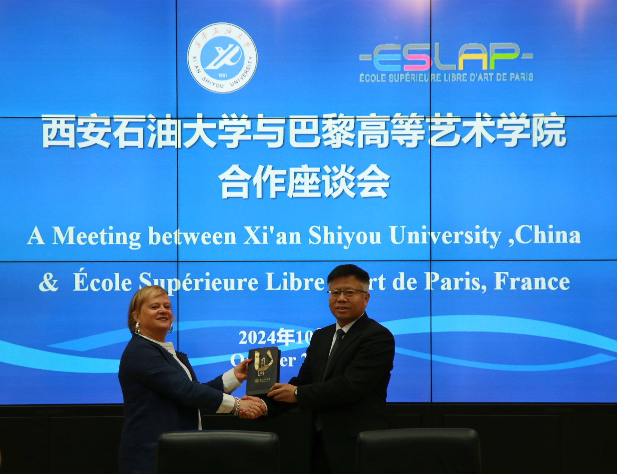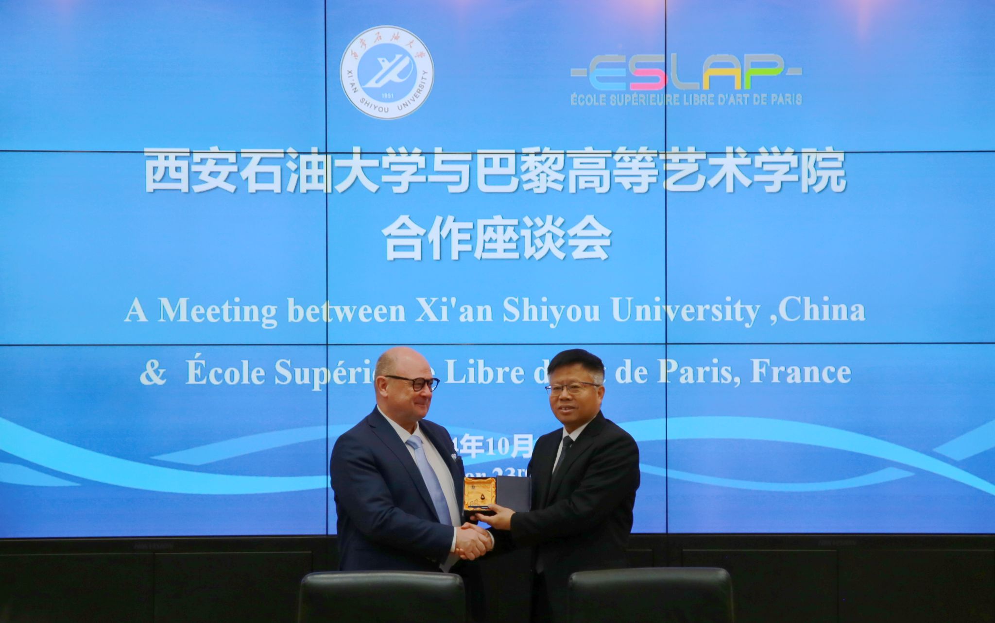 10月23日上午,法國巴黎高等藝術(shù)學院副校長CANG YUAN(藏淵)、學術(shù)委員會總顧問方所·吉博(GilbertFrancois)、國際合作中心國際關(guān)系總顧問瑪麗·皮埃爾(Marie Pierre)等一行來校訪問,兩校合作座談會在雁塔校區(qū)會議中心第二會議室進行,副校長張驍勇出席座談會并致辭。