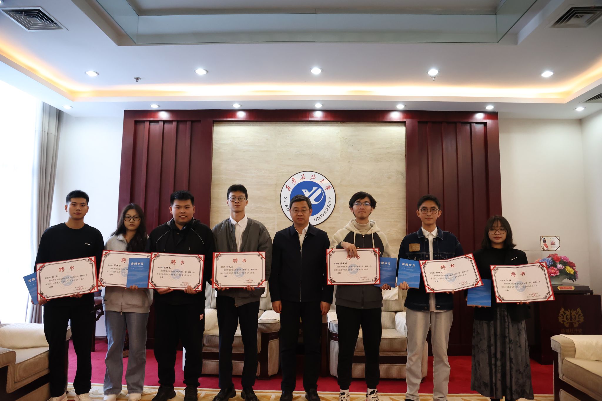 最后,王進(jìn)富為姬祥飛等7位學(xué)生校長助理頒發(fā)聘書并分別贈送書籍《奔騰歲月》。他向受聘同學(xué)表示祝賀并強(qiáng)調(diào),學(xué)生校長助理在促進(jìn)學(xué)生成長和學(xué)校建設(shè)中發(fā)揮積極作用,應(yīng)促進(jìn)學(xué)生和學(xué)校的雙向溝通互動,做學(xué)生心聲的收集者和傳遞者,做學(xué)校政策的宣傳者和踐行者。他勉勵受聘同學(xué)肩負(fù)好職責(zé)使命,在學(xué)習(xí)和實(shí)踐中錘煉本領(lǐng)、增強(qiáng)能力、塑造品格,成長為有理想、敢擔(dān)當(dāng)、能吃苦、肯奮斗的當(dāng)代大學(xué)生。并要求相關(guān)單位充分重視學(xué)生校長助理在改進(jìn)部門工作、推進(jìn)民主治校中的作用,推動學(xué)生校長助理工作做實(shí)做細(xì)。