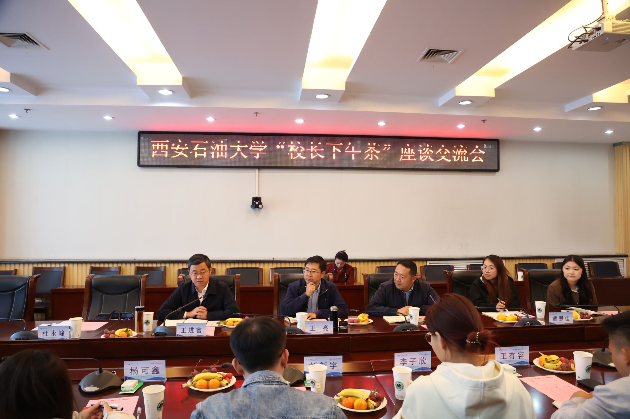 為深入學(xué)習(xí)貫徹黨的二十大精神,進(jìn)一步提高教育服務(wù)管理水平,暢通學(xué)生反饋渠道,引導(dǎo)學(xué)生積極主動表達(dá)自己的心聲、疑惑、建議等相關(guān)需求,提升同學(xué)們的獲得感、幸福感和滿意度,10月23日下午,我校舉辦首屆“校長下午茶”活動,校長王進(jìn)富在鄠邑校區(qū)圖書館第二會議室與學(xué)生代表面對面暢談交流,共話大學(xué)生活。