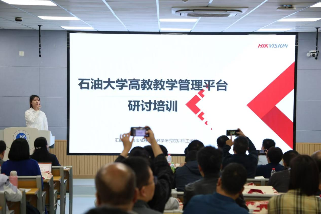 海康威視智慧教學(xué)研究院高級(jí)講師作了題為《高校教學(xué)管理平臺(tái)及信息化教學(xué)設(shè)備深度研討》的培訓(xùn),他通過(guò)理論講解與操作演示相結(jié)合的方式,介紹了學(xué)校教學(xué)管理平臺(tái)軟硬件的基本功能、操作技巧、應(yīng)用方法、故障排查等。