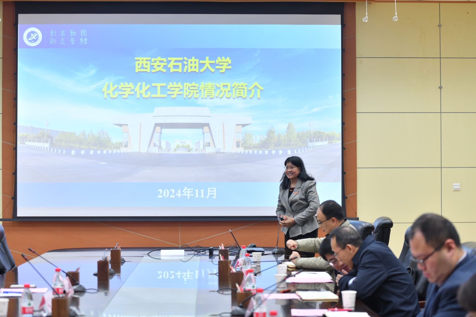 化學化工學院院長王文珍從學院學科專業(yè)、實驗平臺建設、師資隊伍、教學科研、特色成果以及未來學院發(fā)展目標等方面介紹了學院基本情況。