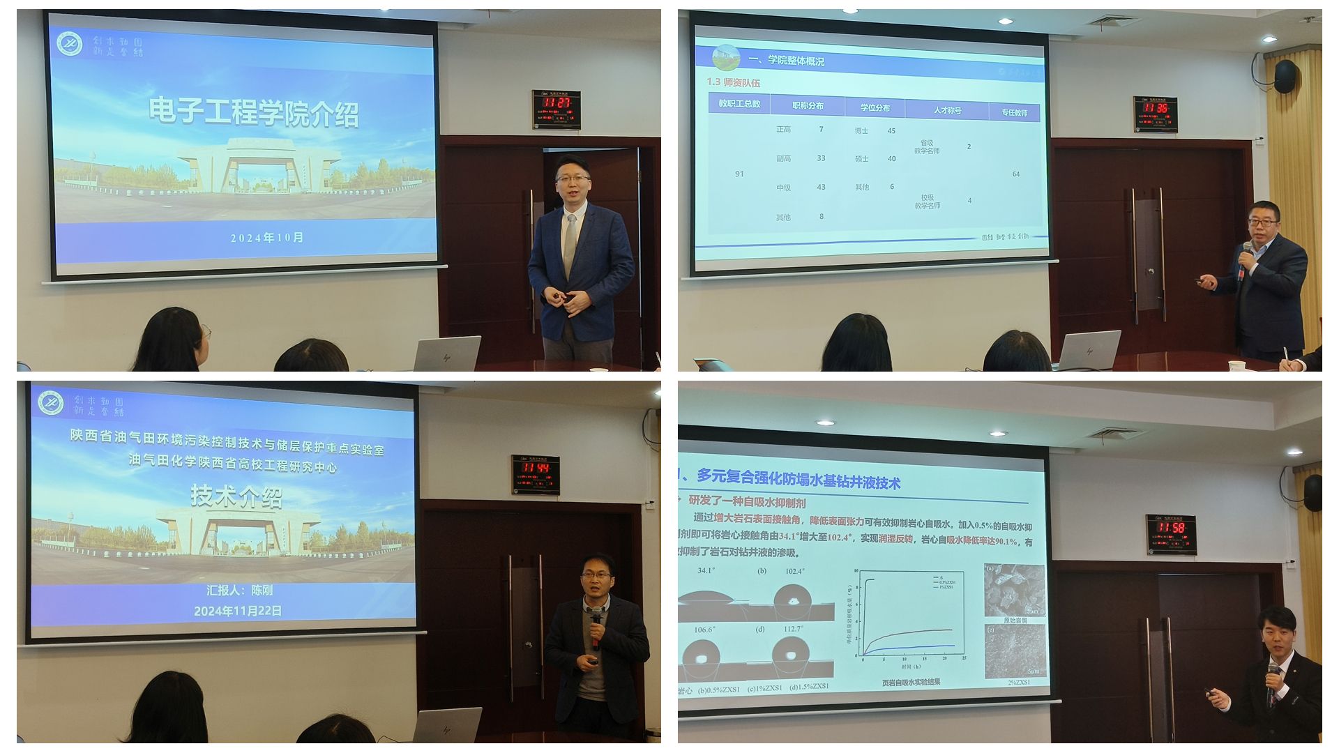 會(huì)上,電子工程學(xué)院院長(zhǎng)李飛、計(jì)算機(jī)學(xué)院院長(zhǎng)劉志坤、化學(xué)化工學(xué)院教授陳剛及石油工程學(xué)院博士教師王宗輪就科研團(tuán)隊(duì)及科研成果分別進(jìn)行了匯報(bào)展示。