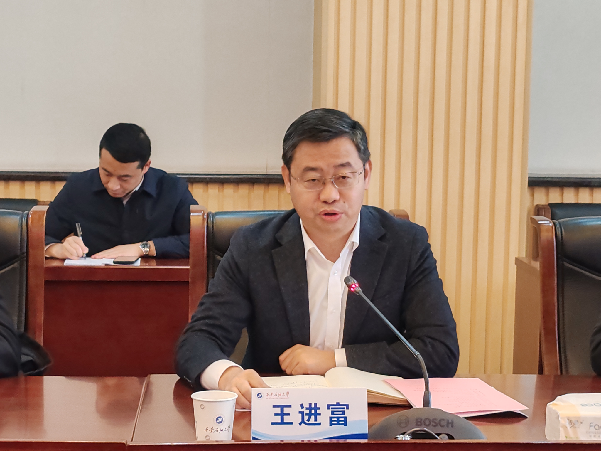 11月22日,我校與安東油田服務(wù)集團(tuán)在鄠邑校區(qū)第二會(huì)議室舉行人才招聘暨校企合作交流座談會(huì)。安東油田服務(wù)集團(tuán)執(zhí)行副總裁兼安東石油技術(shù)集團(tuán)董事長(zhǎng)劉國(guó)慶、西安石油大學(xué)校長(zhǎng)王進(jìn)富出席會(huì)議。學(xué)生工作處(就業(yè)創(chuàng)業(yè)指導(dǎo)中心)、科研處、石油工程學(xué)院、電子工程學(xué)院、計(jì)算機(jī)學(xué)院、經(jīng)濟(jì)管理學(xué)院相關(guān)負(fù)責(zé)同志參加會(huì)議。會(huì)議由副校長(zhǎng)趙健主持。