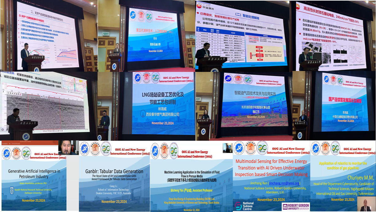在會議交流階段,2024油氣AI與新能源國際會議以“油氣AI科技創(chuàng)新,能源共謀綠色發(fā)展”為主題,特邀來自中國、英國、澳大利亞、沙特阿拉伯、哈薩克斯坦、土庫曼斯坦等國家的13位知名專家學者,通過線下、線上,圍繞AI在油氣勘探、測井、地震、管道工程、地面工程、工程材料研究中的應用以及地熱、光伏、儲能等新能源領(lǐng)域做了精彩的學術(shù)報告,吸引了校內(nèi)外200余名師生參加,為理解油氣AI與新能源技術(shù)現(xiàn)狀和發(fā)展趨勢提供了寶貴機會。