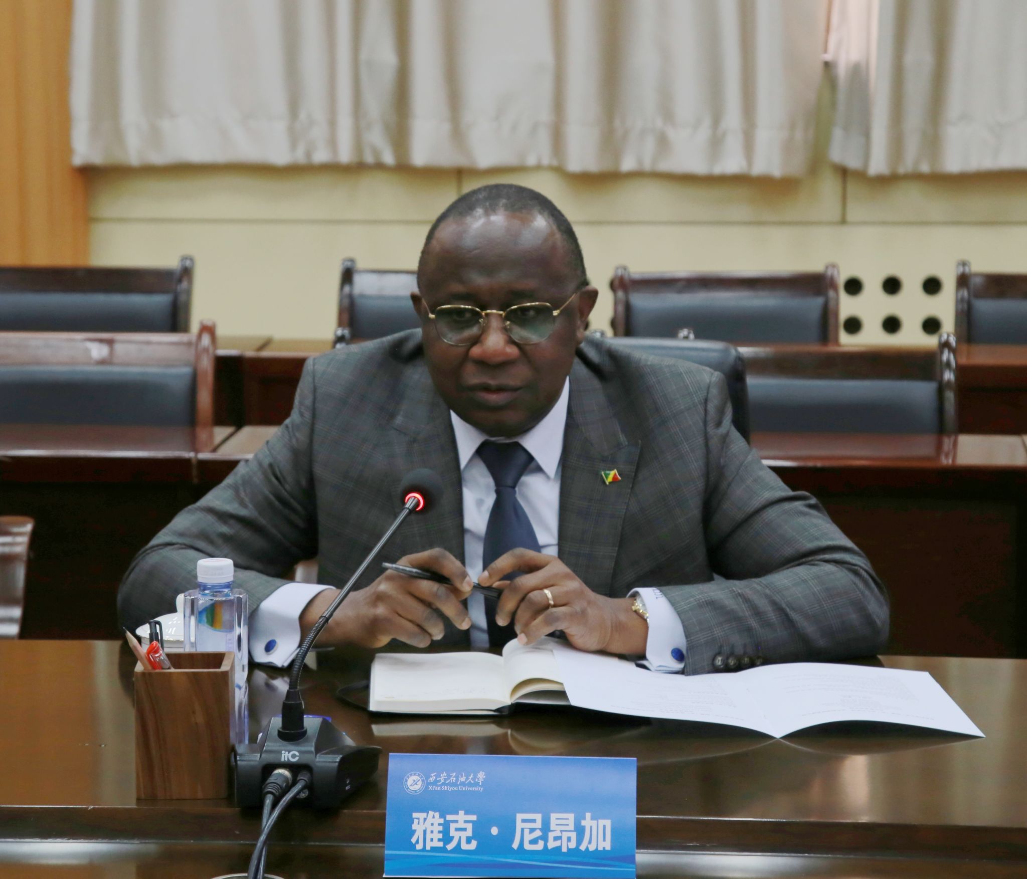 雅克·尼昂加大使對(duì)學(xué)校的熱情接待表示感謝。他表示,石油產(chǎn)業(yè)是剛果(布)重要的經(jīng)濟(jì)支柱產(chǎn)業(yè),越來(lái)越多的中國(guó)石油企業(yè)在剛果(布)投資合作。西安石油大學(xué)是中國(guó)石油行業(yè)具有影響力的高等學(xué)校,希望積極推進(jìn)中剛兩國(guó)高校多元化合作,拓展能源領(lǐng)域新合作,建成能源領(lǐng)域具有引領(lǐng)作用的中剛教育合作項(xiàng)目,助力中非合作,實(shí)現(xiàn)共同發(fā)展。