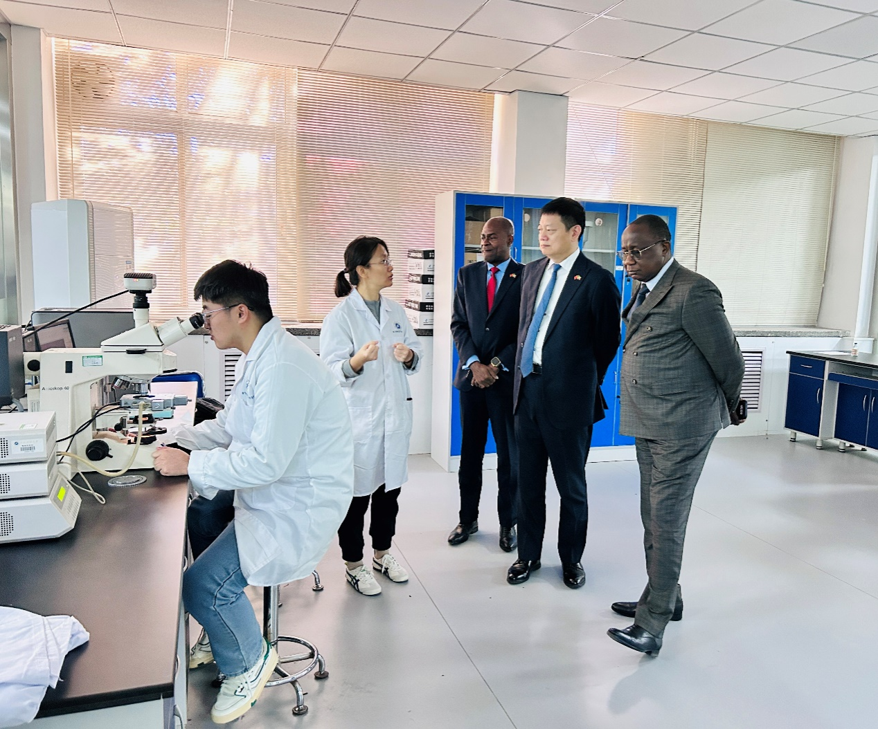 會(huì)后,雅克·尼昂加大使一行參觀了我校西部低滲—特低滲透油田開(kāi)發(fā)與治理教育部工程研究中心、陜西省油氣成藏地質(zhì)學(xué)重點(diǎn)實(shí)驗(yàn)室、現(xiàn)代分析檢測(cè)中心等重點(diǎn)實(shí)驗(yàn)室,對(duì)我校在油氣領(lǐng)域取得的科研成果表示贊賞,希望未來(lái)繼續(xù)推進(jìn)剛果(布)與我校在石油天然氣領(lǐng)域的科研合作。