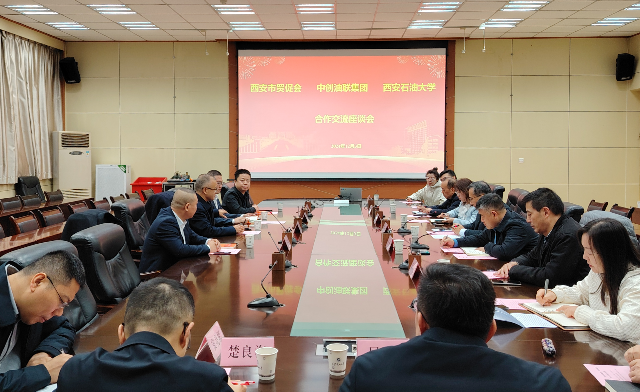 12月3日上午,西安市貿促會一級調研員馮武剛、中創(chuàng)油聯(lián)集團董事長林曉飛一行來校洽談合作。校黨委副書記張木出席座談會并講話。