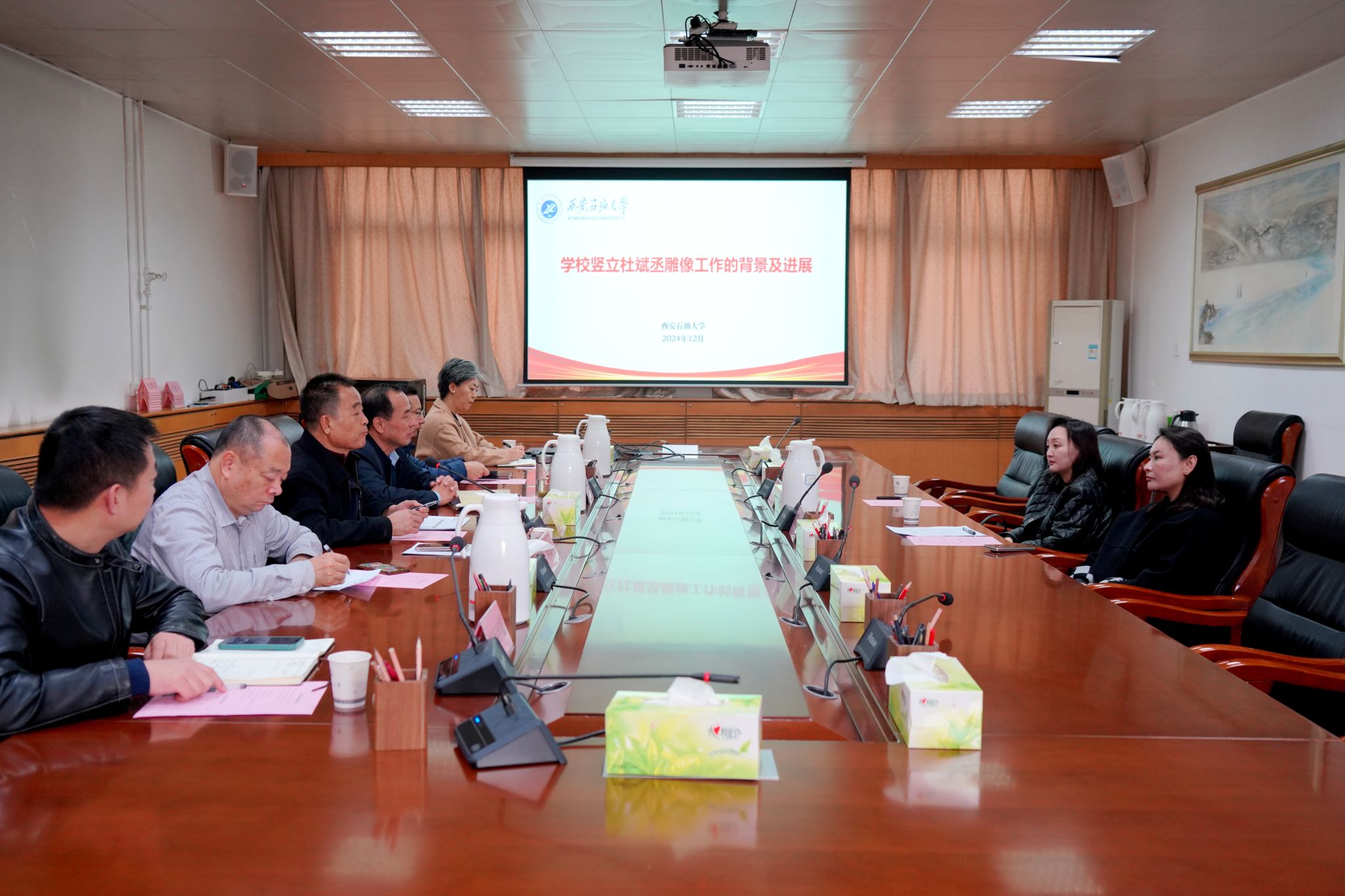 12月3日上午,學(xué)校開展合作交流座談,學(xué)校領(lǐng)導(dǎo)、陜北米脂鄉(xiāng)賢代表及學(xué)校有關(guān)部門負(fù)責(zé)人共同商討杜斌丞先生雕像建設(shè)工作。