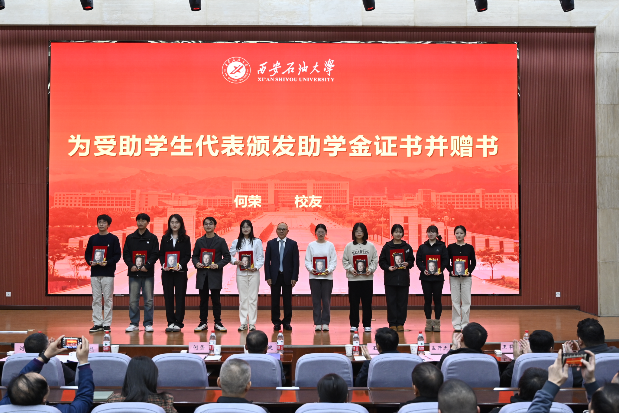 12月5日下午,西安石油大學(xué)2024年騰輝助學(xué)金發(fā)放儀式暨何榮校友報告會在鄠邑校區(qū)弘石學(xué)術(shù)報告廳舉行。西安石油大學(xué)副校長趙健,西安騰輝電氣有限公司總經(jīng)理、“騰輝助學(xué)金”主要出資人、西安石油大學(xué)1992屆校友何榮出席儀式。學(xué)生工作處、校友工作與合作交流處、校團委、機械工程學(xué)院負責(zé)人,西安騰輝電氣有限公司員工代表,2024年騰輝助學(xué)金獲得者,各院(系)師生代表共400余人參加了活動。