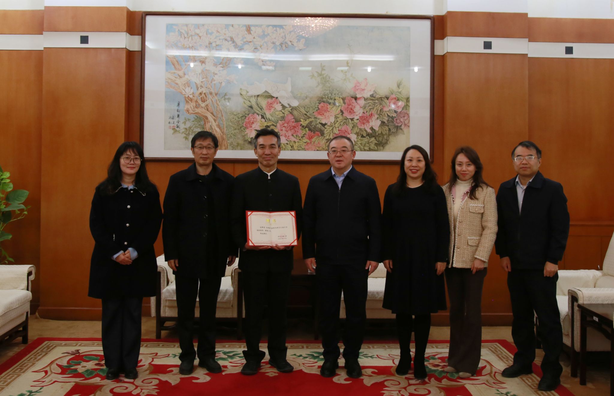 會(huì)前,我校黨委書記常江、副校長(zhǎng)蘇文甫在雁塔校區(qū)會(huì)議中心會(huì)客廳會(huì)見馬曉霖并舉行聘任儀式。常江為馬曉霖頒發(fā)兼職教授聘書,他指出,馬曉霖教授豐富的區(qū)域國(guó)別研究經(jīng)驗(yàn)和專業(yè)實(shí)踐經(jīng)驗(yàn),對(duì)我校區(qū)域國(guó)別學(xué)的學(xué)科建設(shè)具有重要的指導(dǎo)作用。馬曉霖感謝學(xué)校的信任和邀請(qǐng),并表示區(qū)域國(guó)別學(xué)是當(dāng)下最具時(shí)效性與發(fā)展前景的新興學(xué)科之一,未來他希望將自身研究經(jīng)驗(yàn)與學(xué)科新業(yè)態(tài)相結(jié)合,為我校區(qū)域國(guó)別學(xué)學(xué)科發(fā)展貢獻(xiàn)力量。