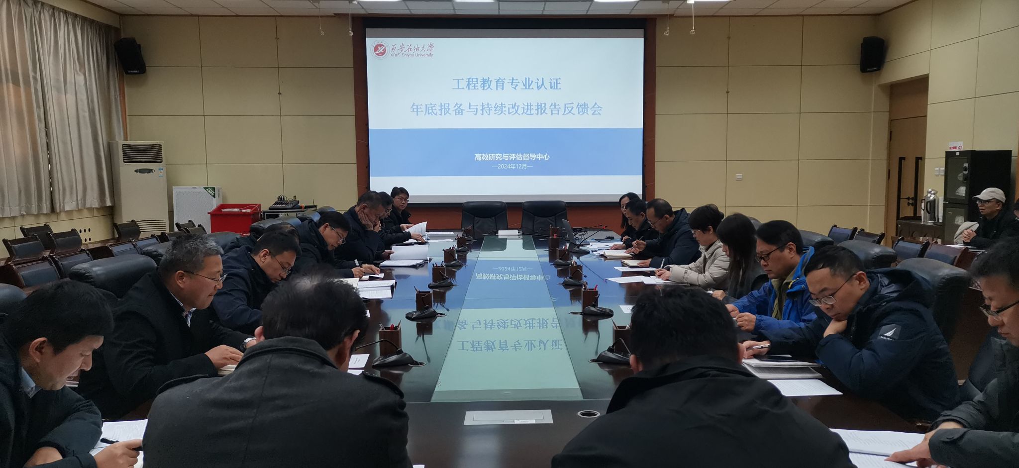 12月13日下午,學校在雁塔校區(qū)會議中心第一會議室召開2024年工程教育認證持續(xù)改進情況報告以及年度報備材料提交工作會,副校長張君濤出席會議。持續(xù)改進報告校審專家、教務處負責人,石油工程學院、地球科學與工程學院、化學化工學院、電子工程學院、機械工程學院、材料科學與工程學院、計算機學院、新能源學院、土木工程學院教學副院長及通過工程教育認證的14個專業(yè)的帶頭人、負責人參加了會議。