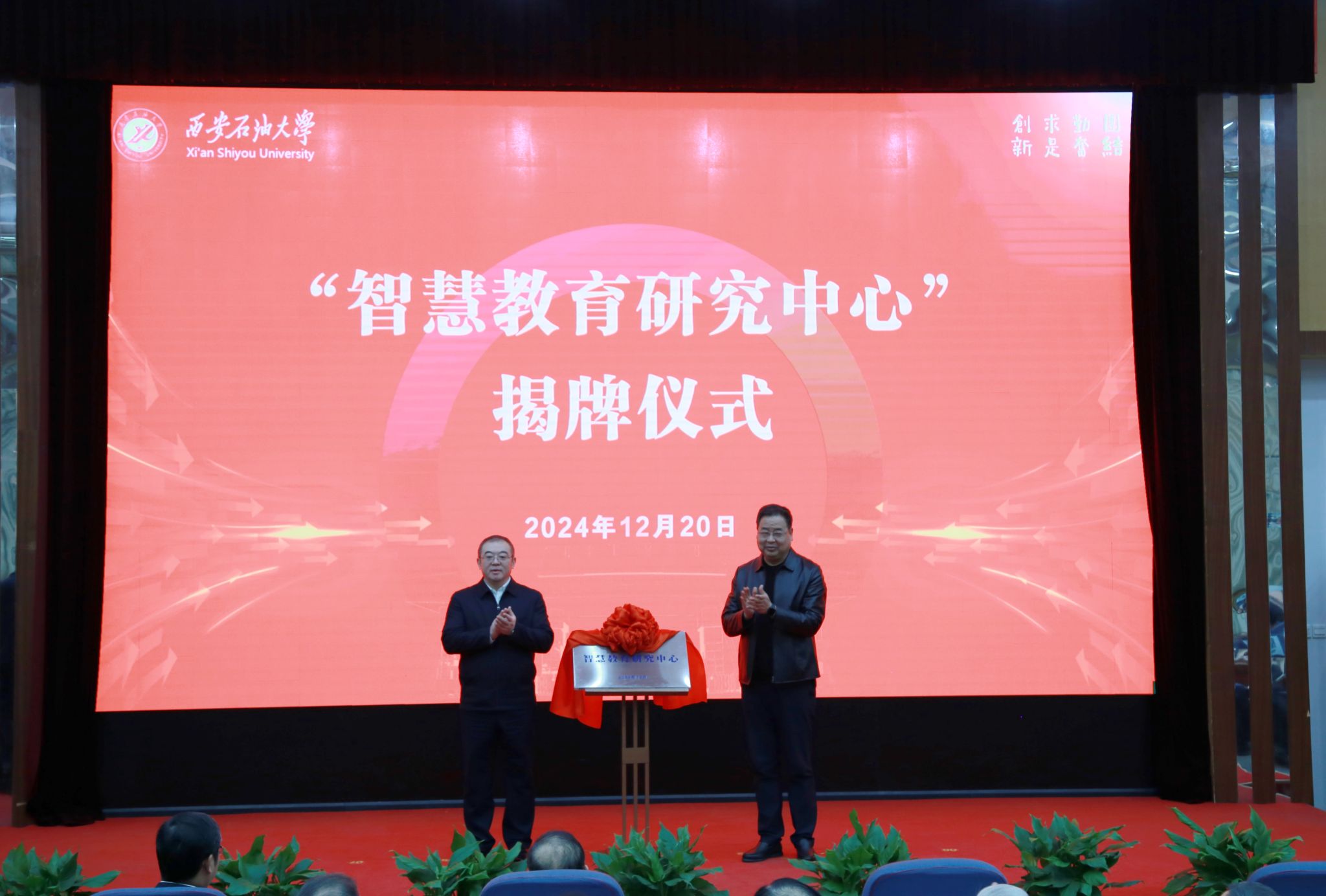 校黨委書記常江、陜西省教育廳教育信息化處處長(zhǎng)李享陽共同為“智慧教育研究中心”揭牌。