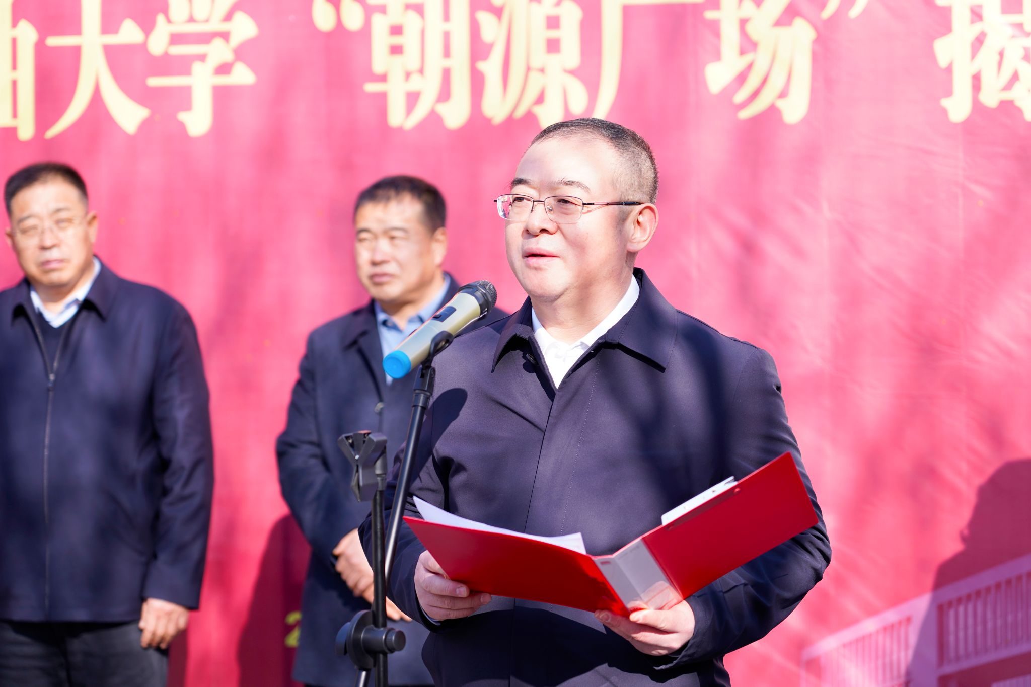 盧宇介紹了公司近年來對教育事業(yè)的關(guān)注與支持情況。他談到,助力教育是企業(yè)應(yīng)盡的社會責任,長期以來,朝源礦業(yè)在謀求自身發(fā)展的同時,始終牢記企業(yè)的責任與擔當,希望通過捐贈幫助學校改善教學條件,為師生們創(chuàng)造更加舒適宜人的學習與工作環(huán)境,為學校培育優(yōu)秀人才貢獻一份力量。他表示,期望“朝源廣場”能夠成為雙方友誼與合作的永恒見證,并以此為契機,進一步與學校在實踐基地建設(shè)、科技成果轉(zhuǎn)化等方面開展更多深度合作,實現(xiàn)企業(yè)與學校的互利共贏、協(xié)同發(fā)展。