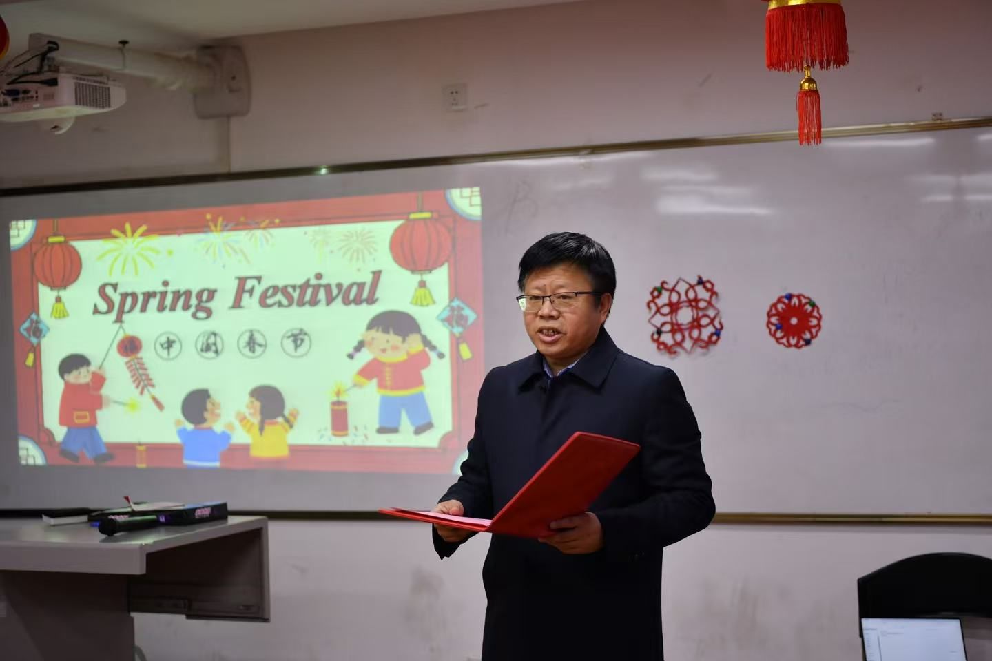 張驍勇發(fā)表新年致辭,向寒假期間留校的國際學生送上了誠摯的新春祝福。他指出,國際學生作為文化交流使者的重要性,在華感受新春民俗,鼓勵他們在新的一年里繼續(xù)探索中國文化,積極參與學校和社會的各項實踐活動。